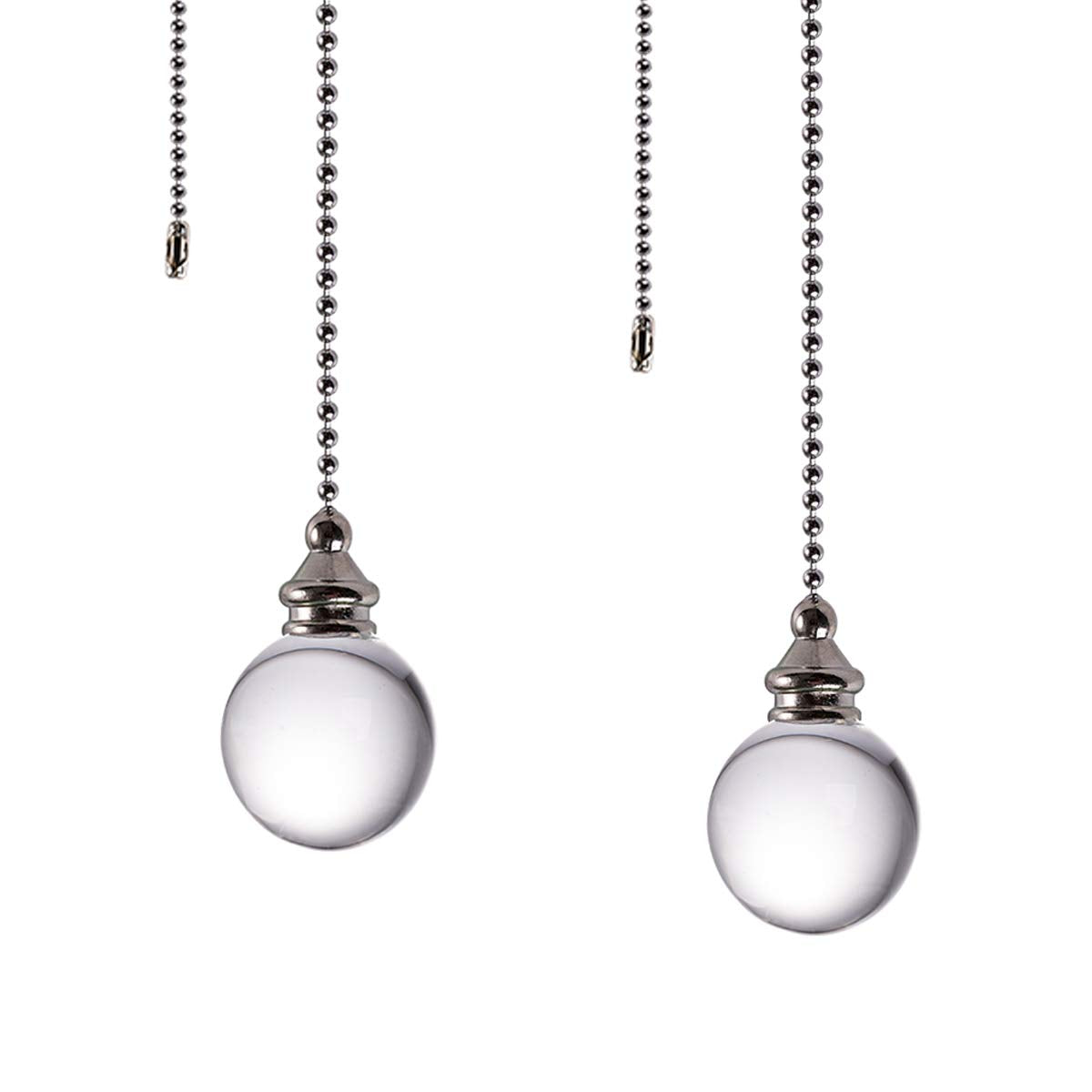 LONGSHENG - SINCE 2001 - Ceiling Fan Pull Chain, 2pcs Clear 30mm Diameter Crystal Ball Fan Pull Chain, 20 Inches Fan Pulls Set with Connector Ceiling Fan Pull Chain Ornaments Lighting Accessories