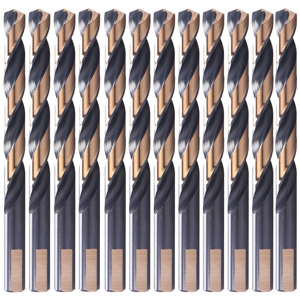12 PCS,1/4", HSS Black and Gold Coated Twist Drill Bits, Metal Drill, Ideal for Drilling on mild Steel, Copper, Aluminum, Zinc Alloy etc. Pack in Plastic Bag