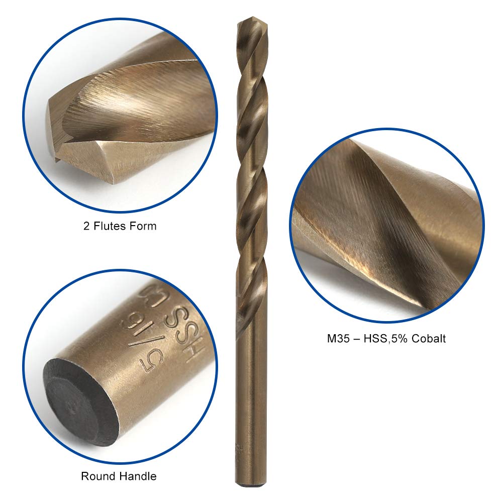 - HIGH QUALITY MATERIAL: 5% Cobalt High Speed Steel M35 provide extended tool life compared to ordinary drill bits. Durable and strong