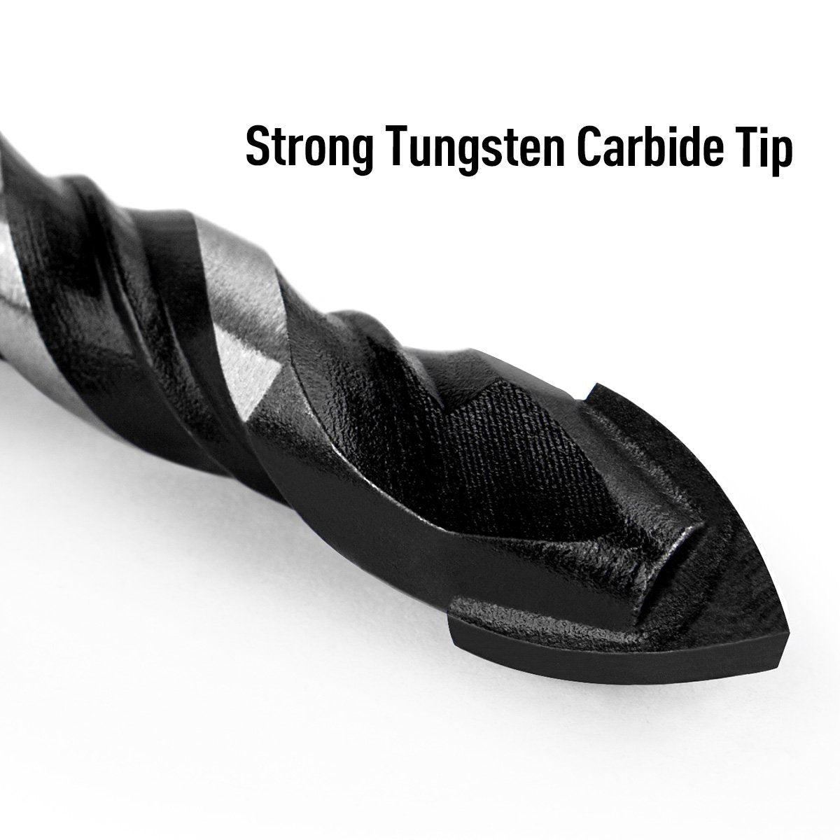 QWORK 5 Pcs Set (6, 6, 8, 10, 12mm) Multi-Material Drill Bit Set for Tile,Concrete, Brick, Glass, Plastic and Wood Tungsten Carbide Tip Best for Wall Mirror and Ceramic Tile on Concrete and Brick Wall