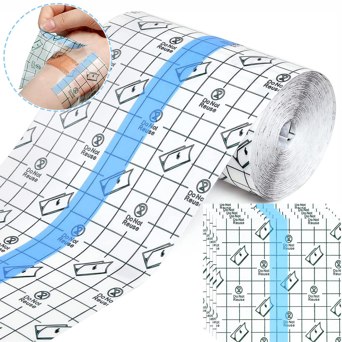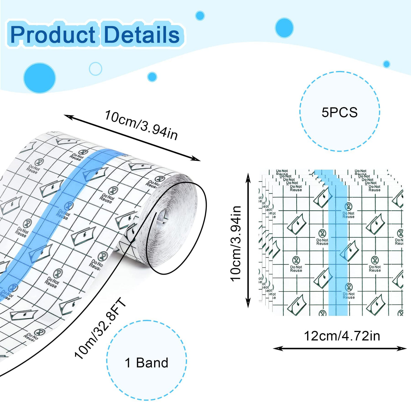- PACKAGE CONTENTS: You will receive 1 roll of waterproof adhesive bandage, size: 10cmx10m/3.9inx394in. 5 sheets of self-adhesive waterproof bandages, dimensions: 10cmx12cm/3.9inx4.7in. The backing paper of the waterproof bandage has grid lines, which are very easy to apply and cut into different sizes.