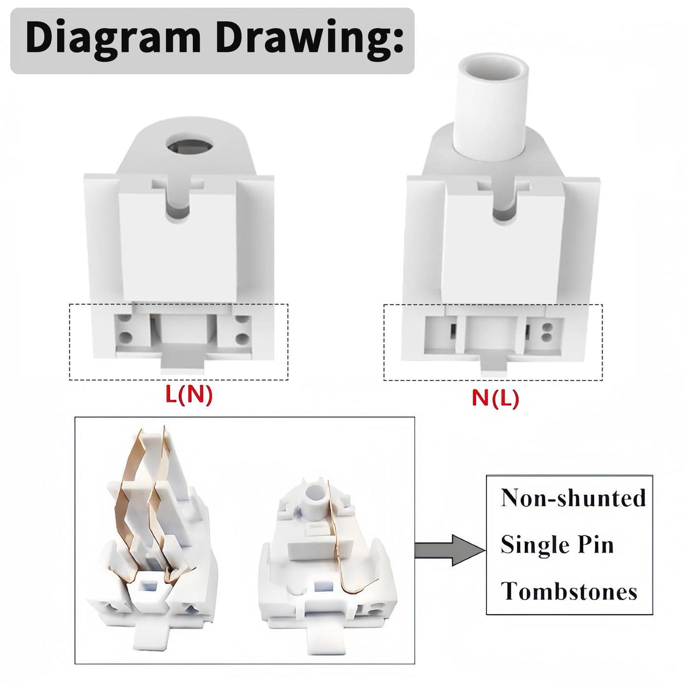 - UL Standard: These Single Pin T8 lamp holders are UL listed. They are made of high quality PBT material which is very durable and fireproof, and makes it the ideal for replacing old florescent lamp holders, 100% safe from fire hazzard, heat resistant.