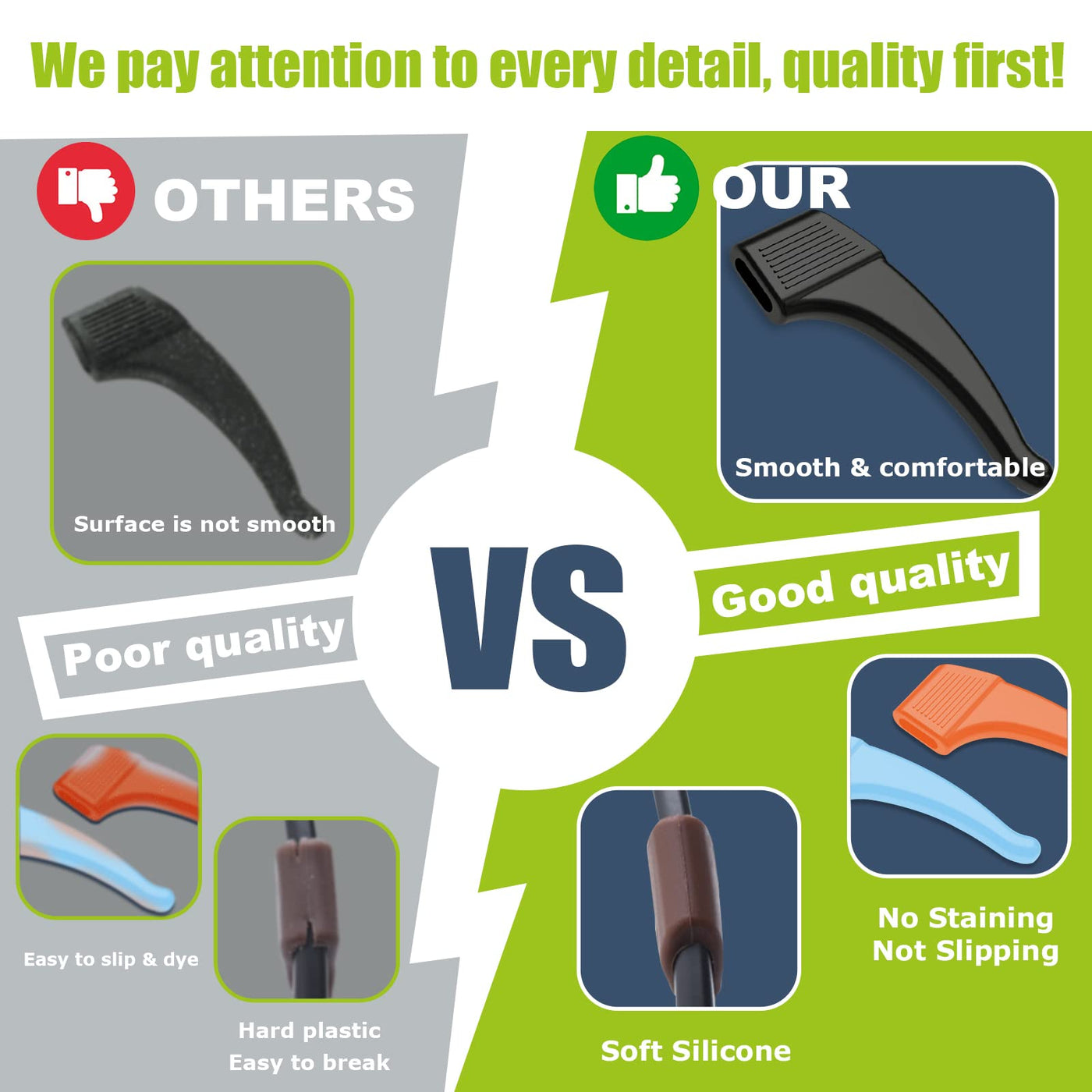 - Good Material: 100% extra soft silicone material, anti slip glasses ear cushion, wont go yellow and solid, and will not harm the skin
