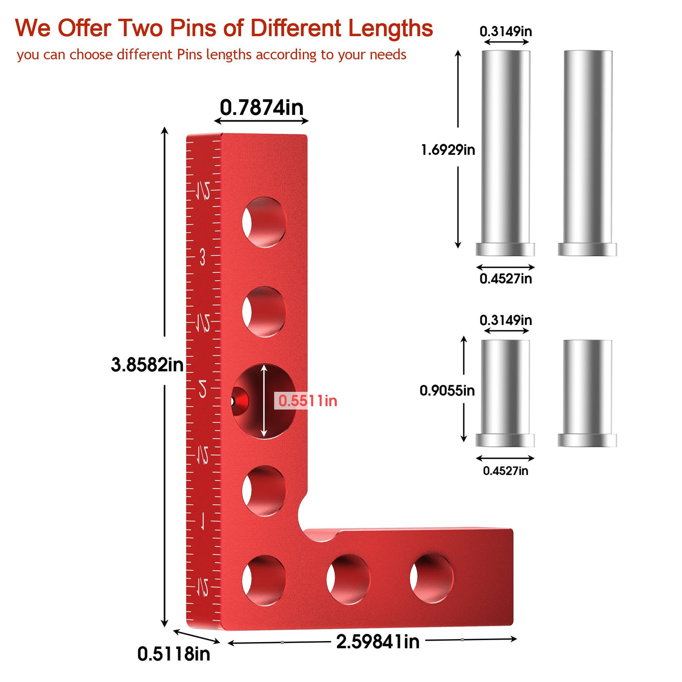 - Durable Material: Square tool is made of high-quality aluminum alloy material with two pins of different lengths stainless steel fixing posts. CNC machined anodized red finish, anti-rust, durable and corrosion resistant.