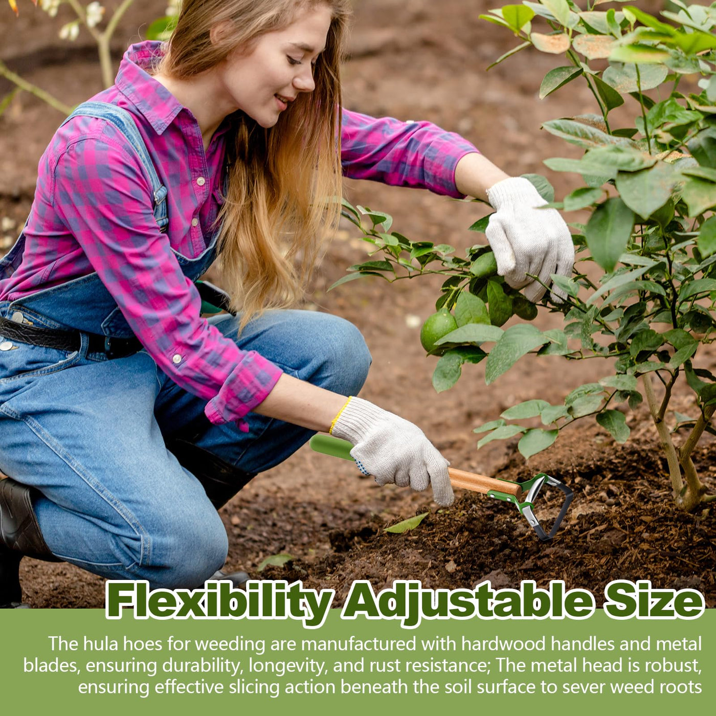 - Quality and Durability: the hula hoes for weeding are manufactured with hardwood handles and metal blades, ensuring durability, longevity, and rust resistance; The metal head is robust, ensuring effective slicing action beneath the soil surface to sever weed roots