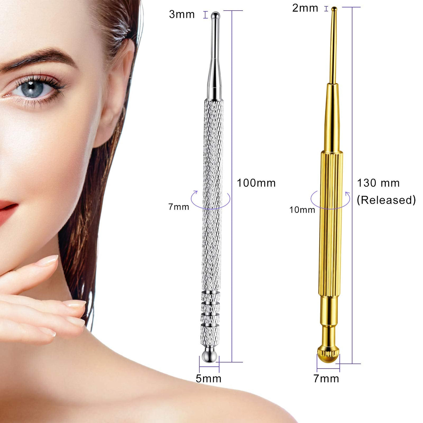 - Proper size: the diameter of the golden acupoint stimulator pen is 3 mm and 7 mm, the diameter of the stainless steel probe is 2 mm and 5 mm, with elaborate small detecting head, which are more precisely position the sensitive acupoint