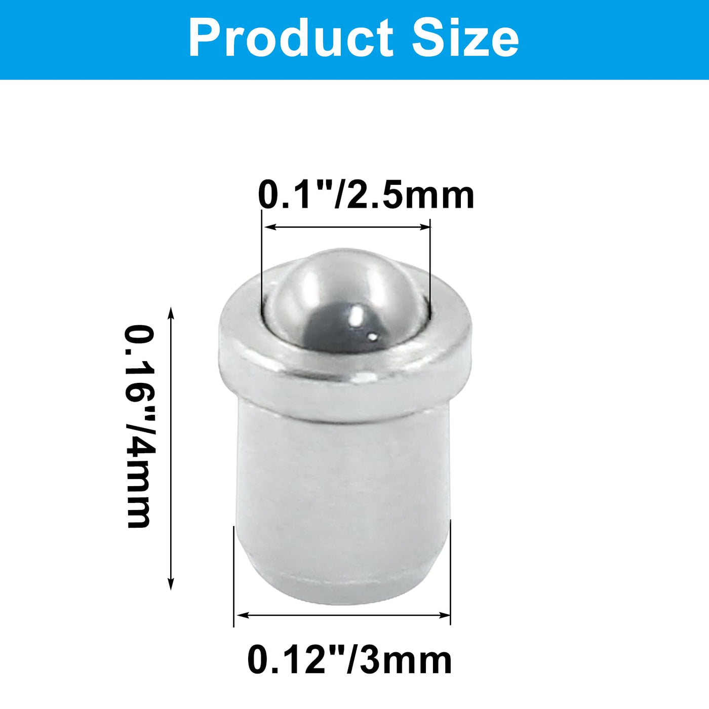 20 pcs Ball Plungers 0.12" Diameter Ball Bearing 304 Stainless Steel Push Fit Ball Spring Smooth Plunger for Door, Cabinet, Closet Drawer(φ 3x4) 0.12"x0.16"(D*H) 20