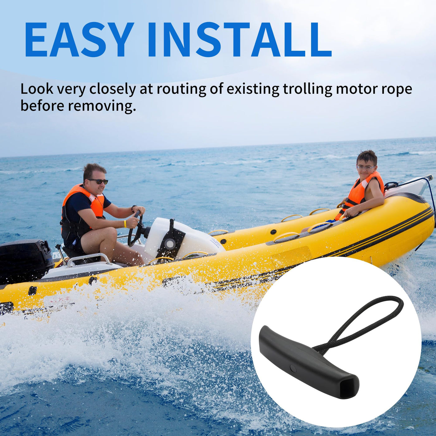 - Premium Durability: Crafted from high-strength nylon rope and rugged hard plastic, the MKA-45 trolling motor handle resists stretching, corrosion, and wear, delivering long-lasting performance in harsh marine conditions