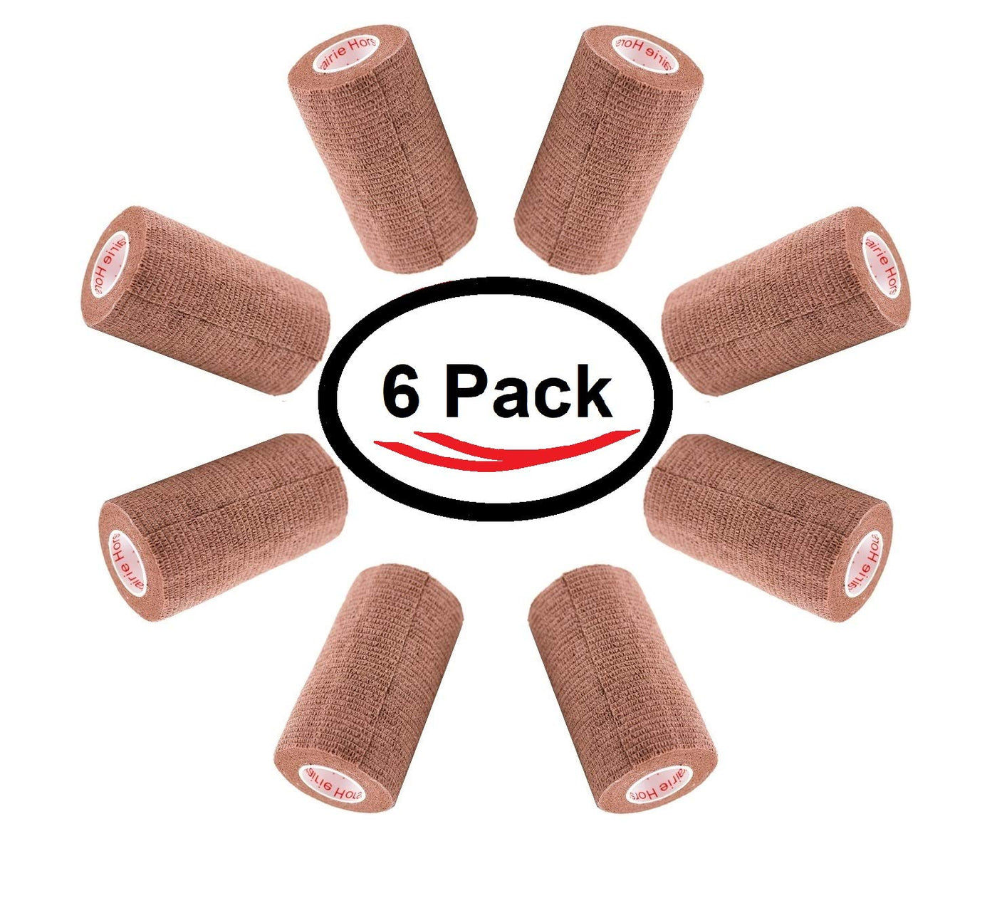 3 Inch Self Adhesive Medical Bandage Wrap Sport Tape (Cool Brown) (6 Pack) Strong Elastic Self Adherent Cohesive First Aid Sport Flex Rolls for Wrist Ankle Knee Sprains and Swelling Cool Brown 6 Count (Pack of 1)