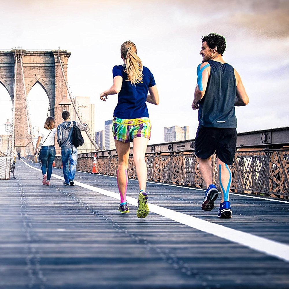 BREATHABLE COTTON Stretch fabric, latex and drug free, no irritation to skins, safe and comfortable to wear. Safe for all ages to use, young and old, professionals and amateurs, pregnant women, gym lifters or anyone who loves exercising. With similar elasticity and thickness to human skin, kinesiology tape stretches and moves with the body and does not restrict movement or create any sensation of constriction. RELIABLE STICKNESS Medical hypoallergenic glue provides strong stickiness and can also be easily removed by hand, leaving no residue to skins. Waterproof and sweat-proof, the kinesiology tape remains in good condition even in sweating body areas. Waterproof, taping 3-5 days showering. Tattoo pregnancy ok. Workouts,gym sessions,runners EXTREMELY STICKY & ELASTIC Made from cotton and easy to apply. It is an excellent Kinesiology tool that promotes the necessary body conditions for a rapid recovery, or as an injury preventive, supporting overused or injured muscles and joints without restricting range of motion Read more Read more How it Works Lifts muscle and fascia skin to decompress the area, reducing swelling and inflammation, and helps speed recovery. Stimulates the nerve endings and receptors in the skin to alter the pain signals that are sent to the brain, to "lower the volume of pain" and delay fatigue. POSITIVE THERAPEUTIC BENEFITS Multiple uses By supporting muscles / joints before, during and after exercise, protects muscles joints from common sports injuries and speeds up recovery from over used injured muscles. Easy to Apply. inhibition of hypertonic muscles protecting muscles against excessive stress protecting joints it lifts the skin slightly to increase blood circulation which reduces swelling suppressing pain reducing inflammation reducing lymphatic oedema reducing haematoma Read more Read more