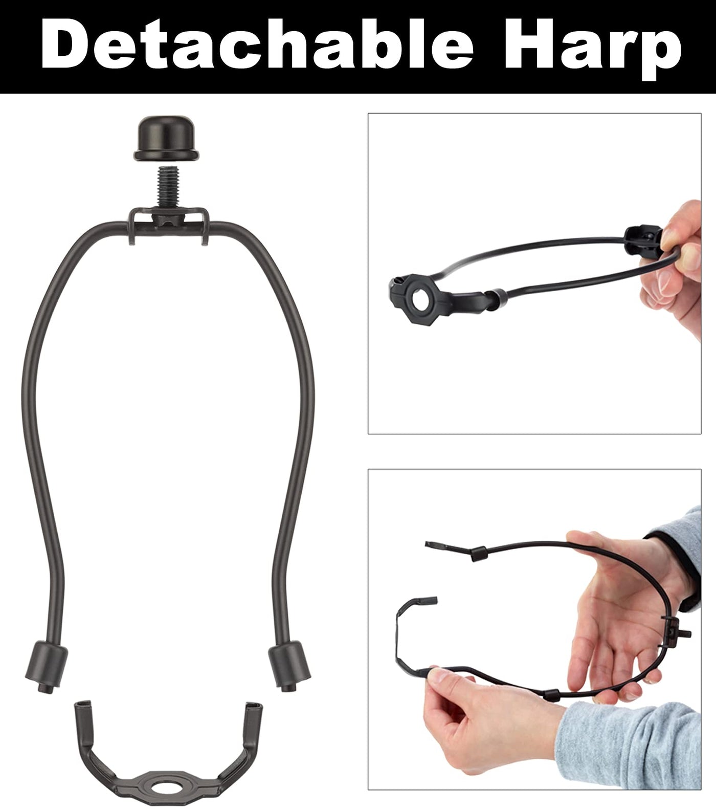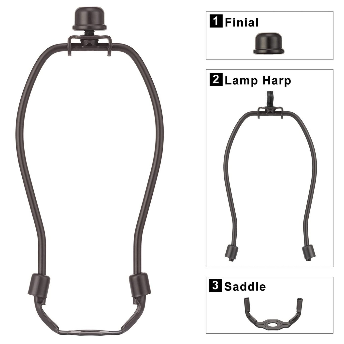 - EASY TO INSTALLATIONThis detachable lamp harp accessories can secures lampshade to standard table or floor lamps easily, the finial is easily screws on and off, saddle can be removed if wishing to keep your existing saddle.