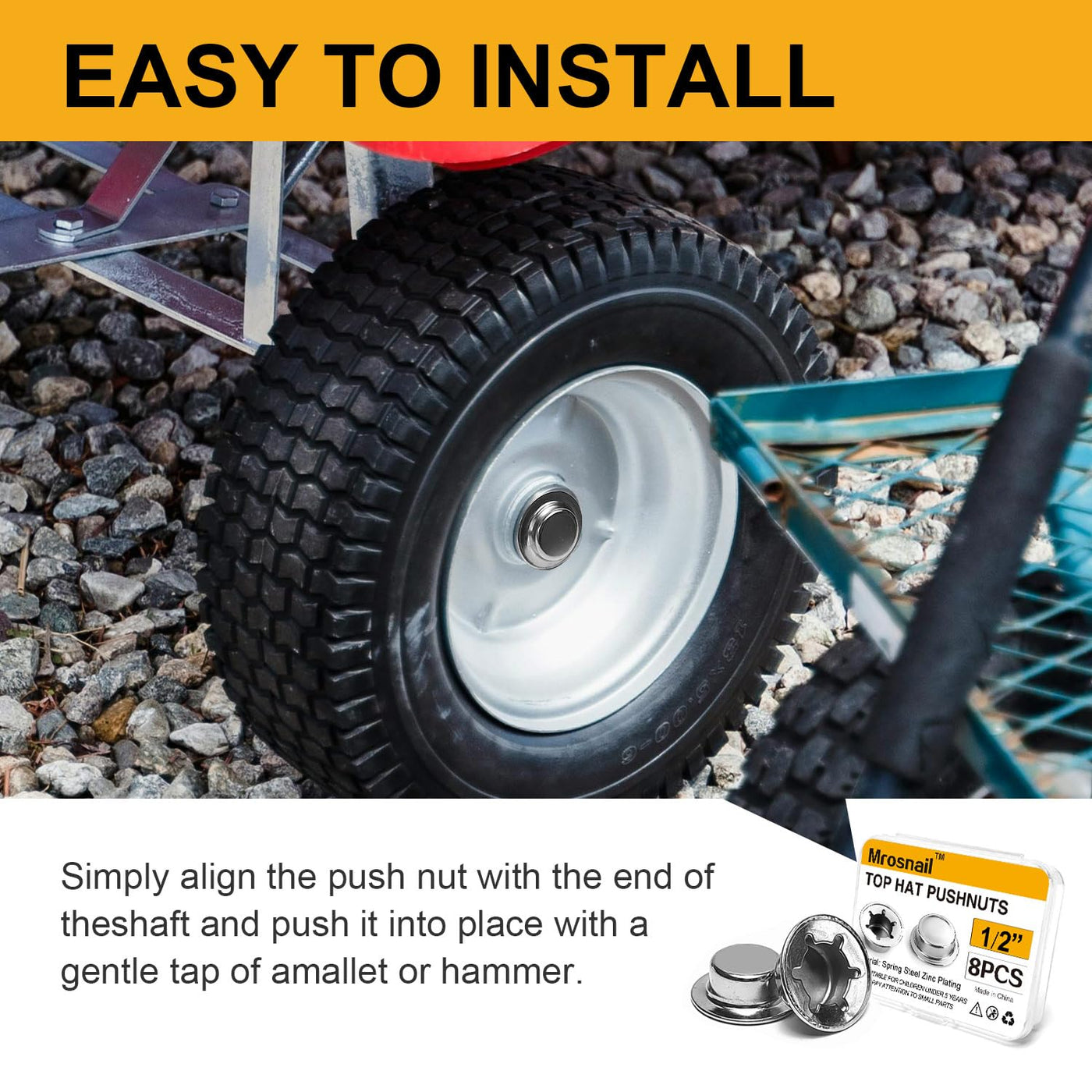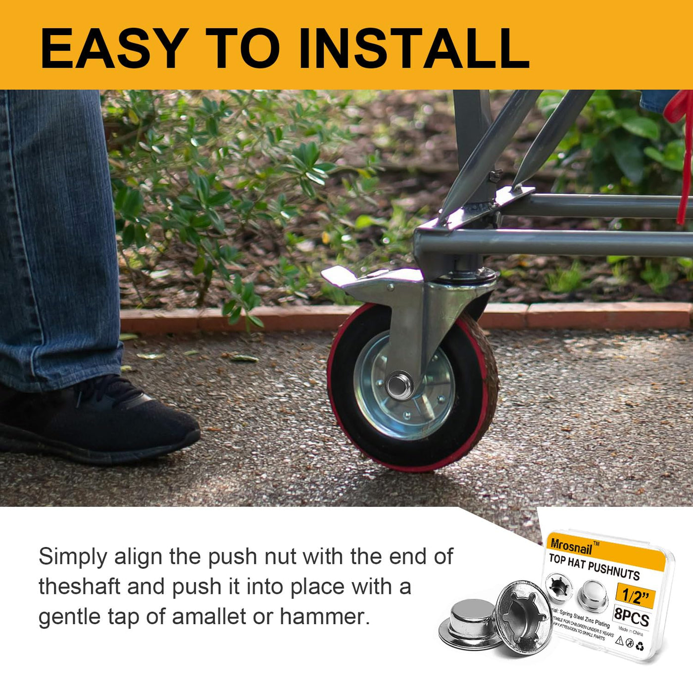 - [VALUE PACK OF 8]: This 8-piece pack of 1/2 push nuts provides an efficient solution for replacing or upgrading axle caps on hand trucks, rolling bins, lawn wagons, and other wheeled equipment, giving you everything needed for multiple applications.