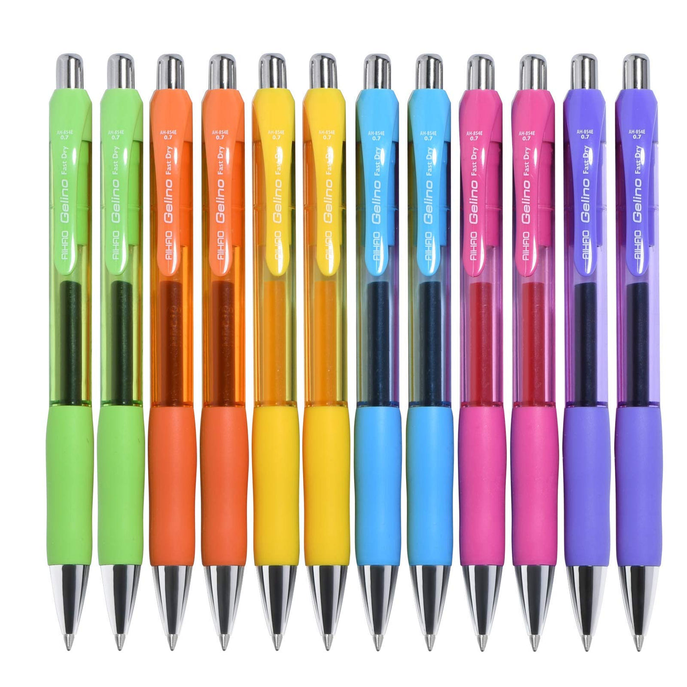 AIHAO Colorful Gel Ink Pens, Medium Point, 0.7mm, 12Pack, Retractable Gel Pen With Comfortable Grip, Assorted Ink, Quick Dry Ink Pen Multicolor