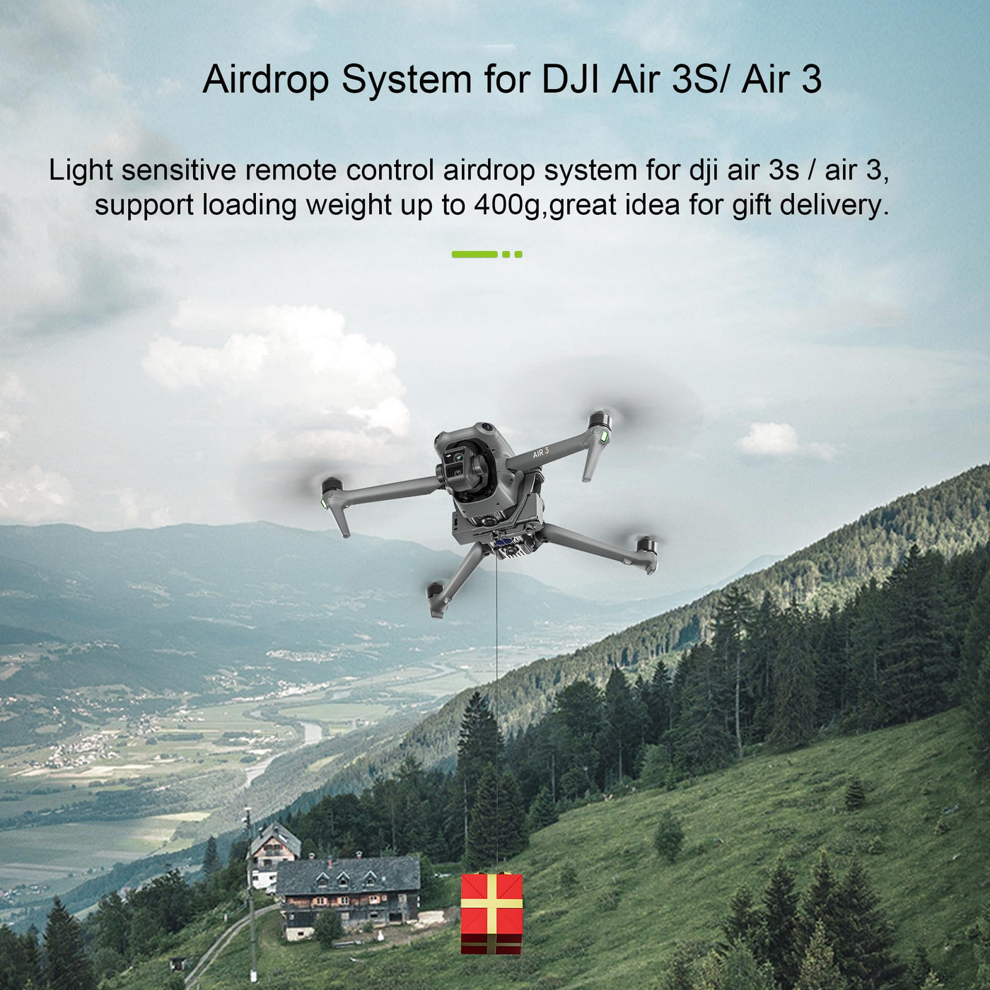 - COMPATIBILITY - The Air 3S airdrop system is suitable for DJI Air 3S/ Air 3 drone, maximum load 400g.