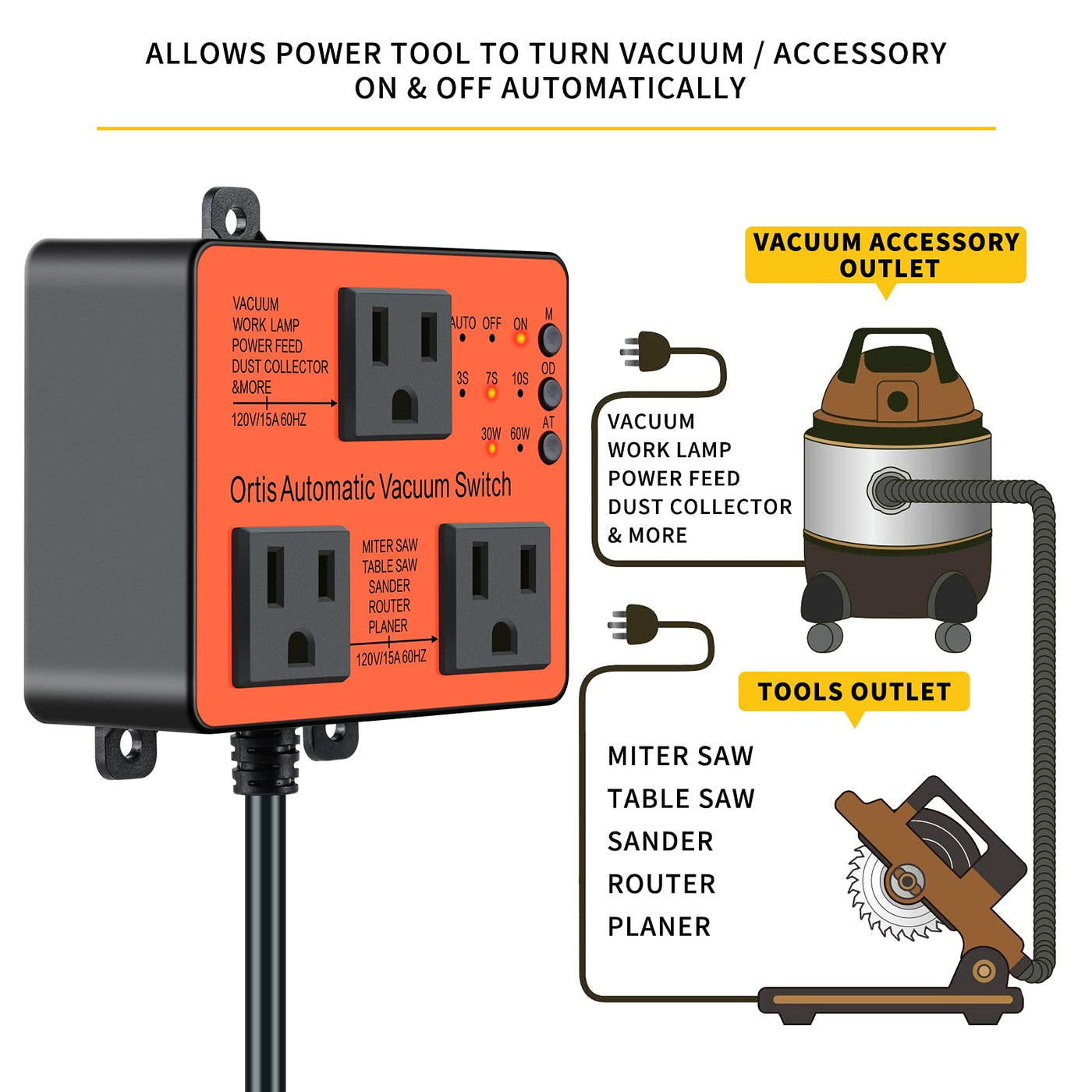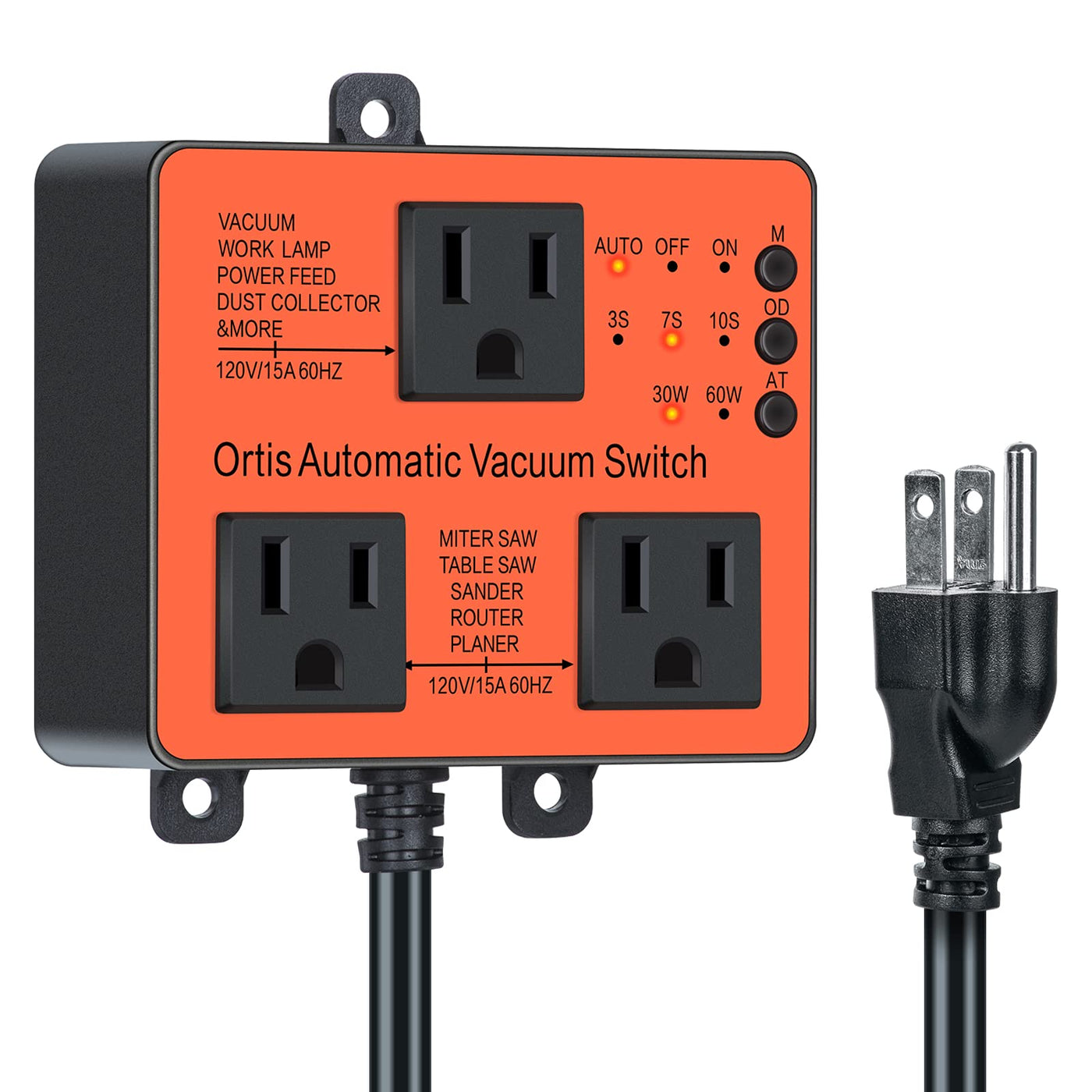Automatic Vacuum Switch, Ortis Dust Control Autoswitch for More Power Tools, Delay Vacuum On/Off to Prevent Circuit Overload and Tripping, Adjustable Actuation Threshold