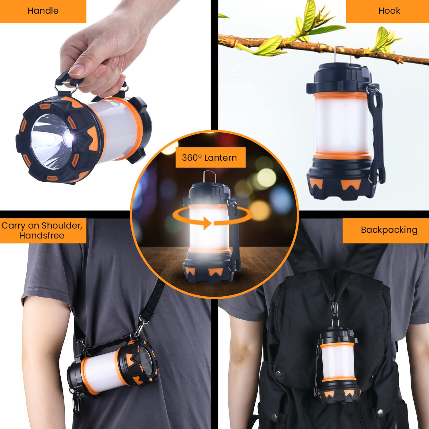 - Multifunctional flashlight: With versatile benefits, our LED camping lantern works as a flashlight, 360-degree lantern light, and a spotlight. Be it camping, hiking or other outdoor activities, our camping light is your adventure buddy that will keep you equipped at all times! Cast bright light for your activities, hiking, fishing, hunting, camping light, outdoor emergencies.