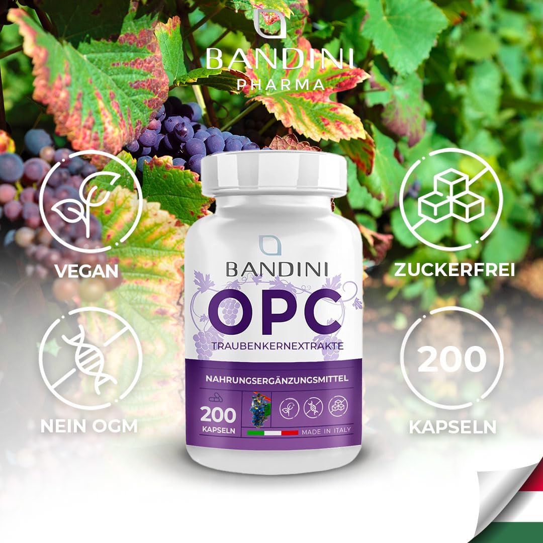 Bandini Opc Grape Seed Extract 1000Mg (Per Daily Dose) - 200 High-Dose Vegan Capsules - Pure European Grape Opc (95%) + Vitamin C - Laboratory Tested - Natural Antioxidant For The Circulation