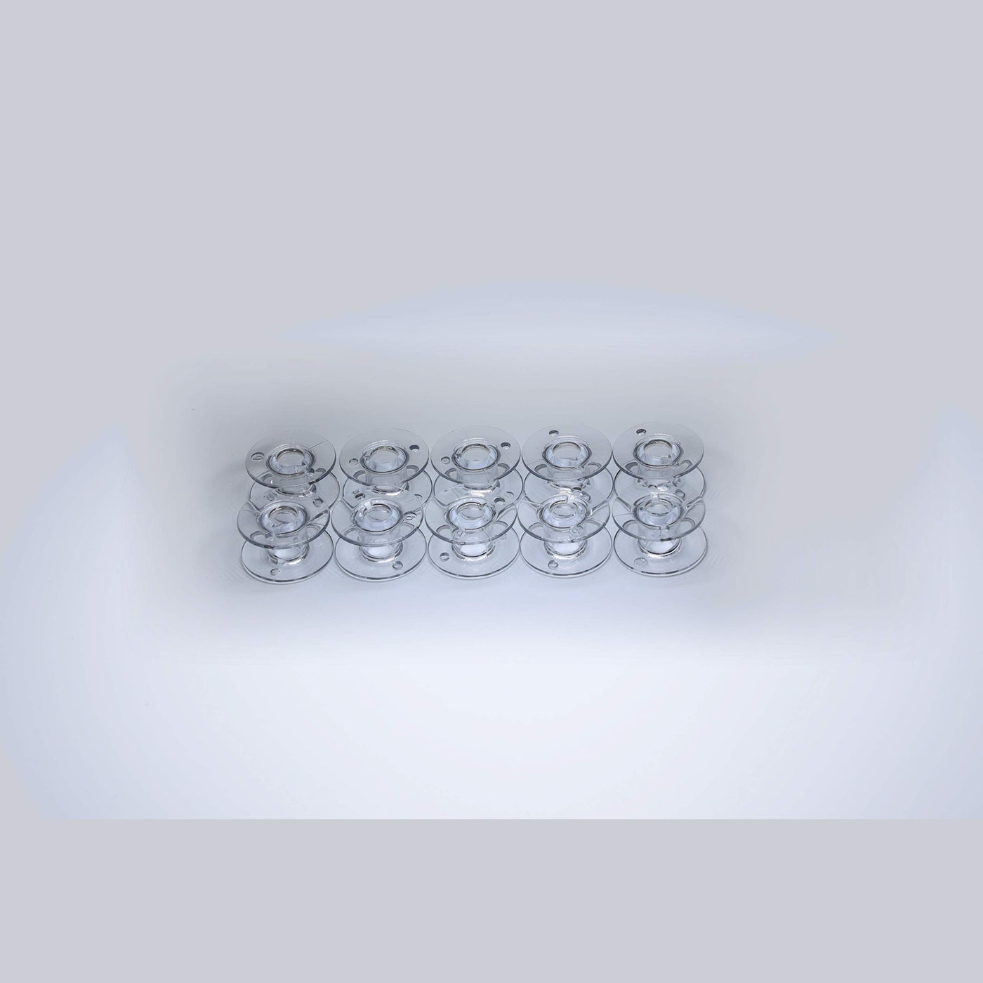 High Quality Clear Plastic Bobbins. Fits the following machines: PE770, LS2125i, XL2230, XL2600i, XL2610, XL3510, XL3750, ES2000, CP6500, CP7500, 1034D, PC210PRW, PC420PRW, SE400, LB6800PRW.