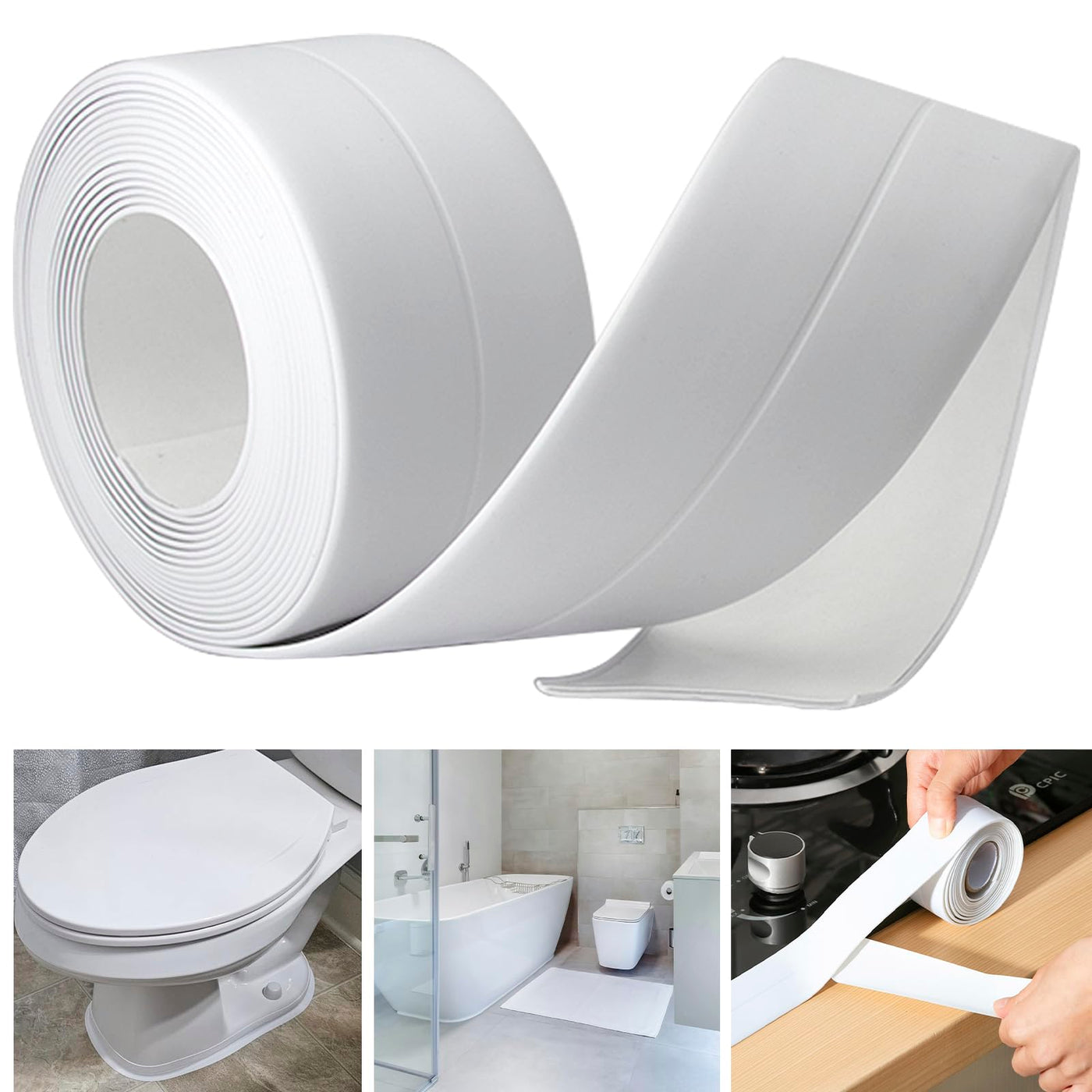 - White Caulk Tape: the tape caulk strip measuring 1.5 inches in width and 10.5 feet in length, the waterproof sealant caulk tape strip with a crease in the middle makes it easy to fold and install.