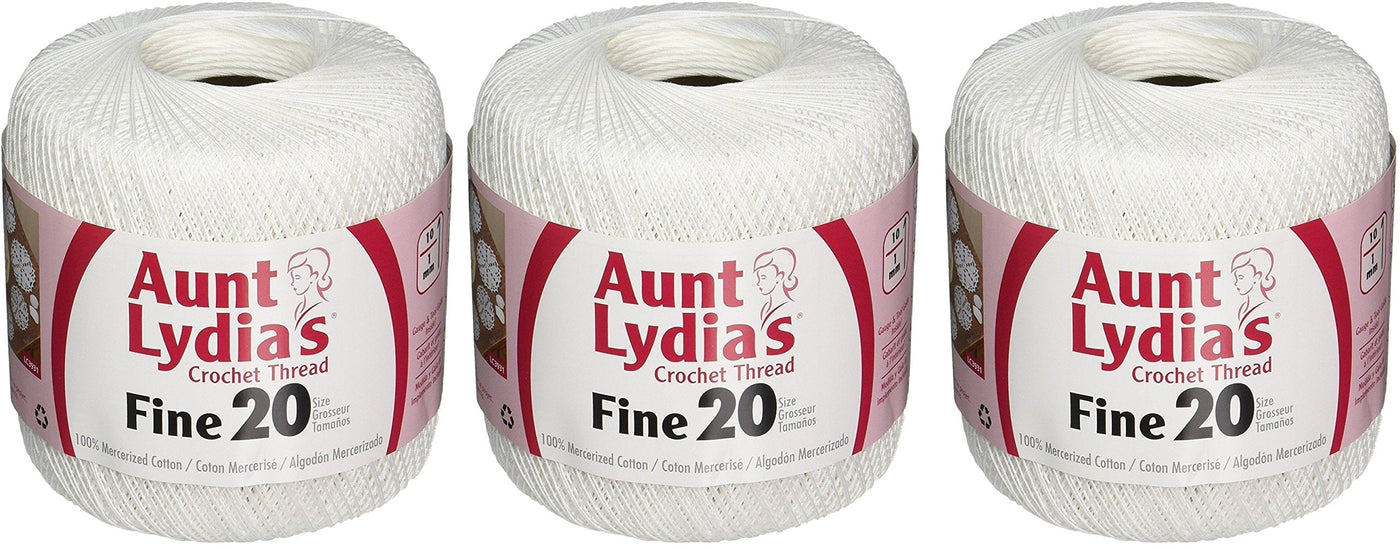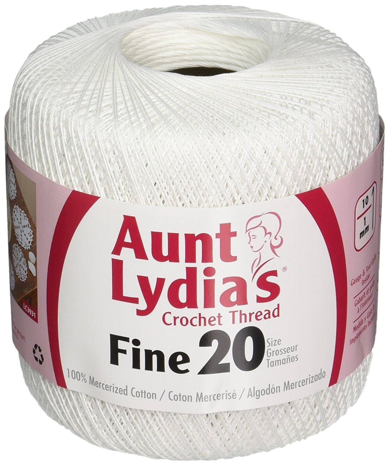 Aunt Lydia's Fine Crochet Cotton. Perfect for fine heirloom quality crochet projects such as doilies table runners home decor and accessories. 100% mercerized cotton Size 20 400 yards. Available in Black White Natural and Cream (sold separately). Machine washable imported.
