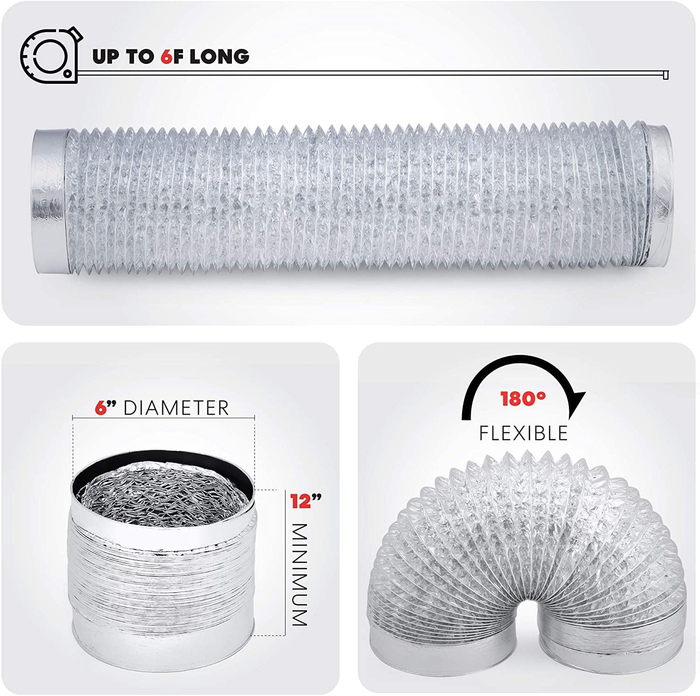 - Flexible design: 6 inch (diameter) and up to 6 feet (length) allows for duct to conveniently expand to fit your exhausting needs.