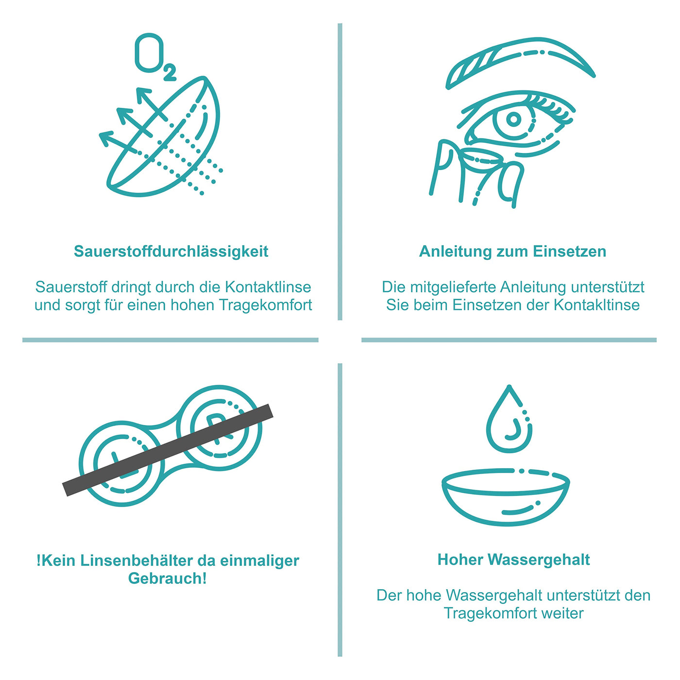 - INCLUDING INSTRUCTIONS: Thanks to the included instructions for use with instructions, the contact lenses can be inserted effortlessly and easily into the eye & can also be removed again