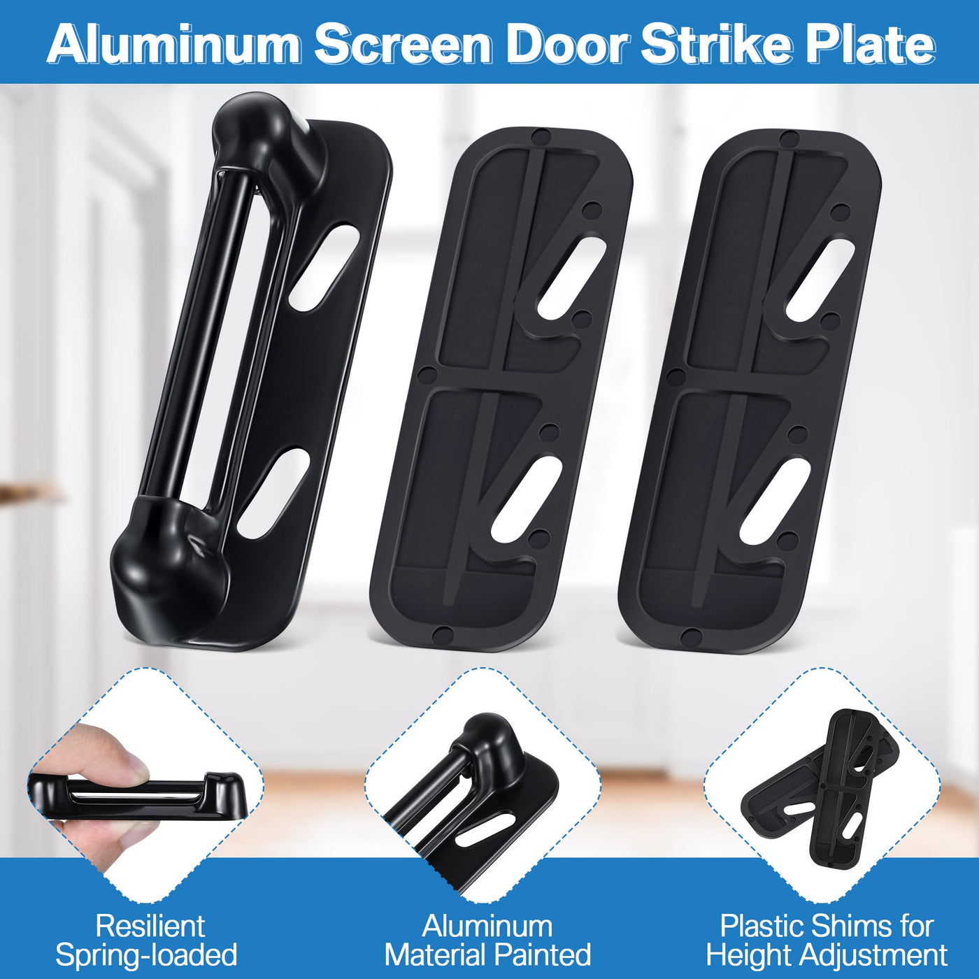 - Quality Aluminum Material: constructed from aluminum materials, this screen door handle replacement kit is built to withstand the rigors of daily use, commonly applied for replace worn or broken strike plates or to upgrade existing screen and storm doors, ensuring long lasting durability and reliable performance