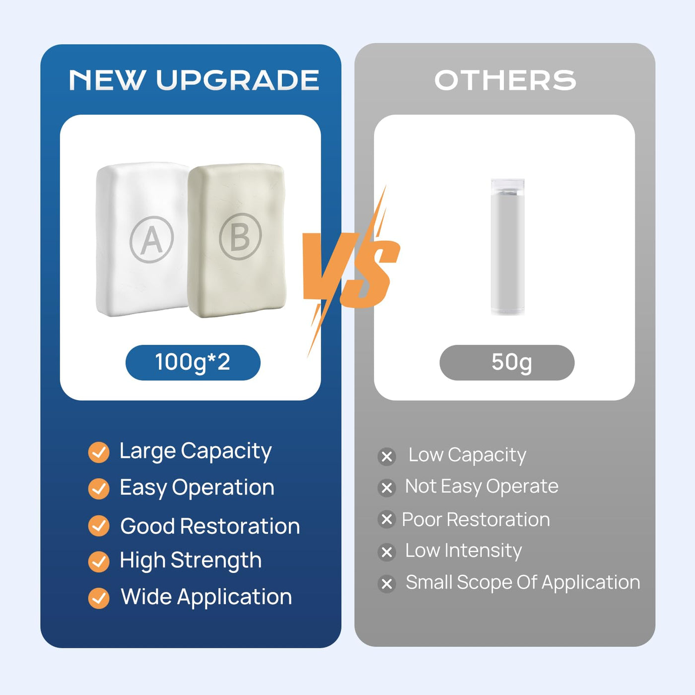 - Multi-Purpose 2-Part Epoxy Putty: This metal filler putty can be used to repair plumbing leaks and pool leaks. As well as holes, cracks, breaks, and uneven surfaces in various materials. The AB epoxy putty filler can be used to repair, fill, and bond metal, plastic, stone, wood, tile, ceramic, acrylic, glass, sculpture, and more.