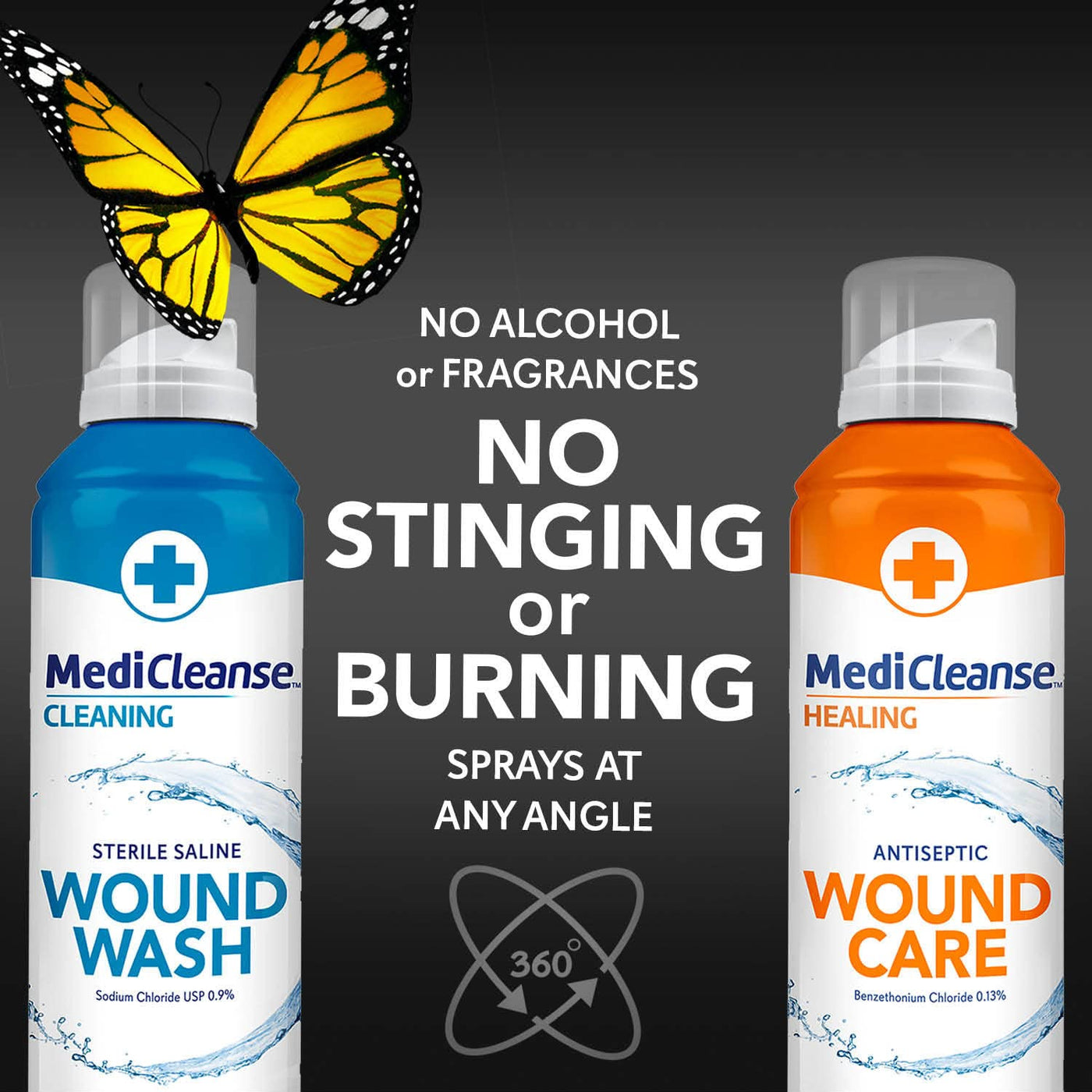 - No Hassle 360 Spray Bottle: MediCleanse Antiseptic Wound Spray and Wound Care Spray can be used at any angle providing a soft mist that can easily be applied to all areas of the body
