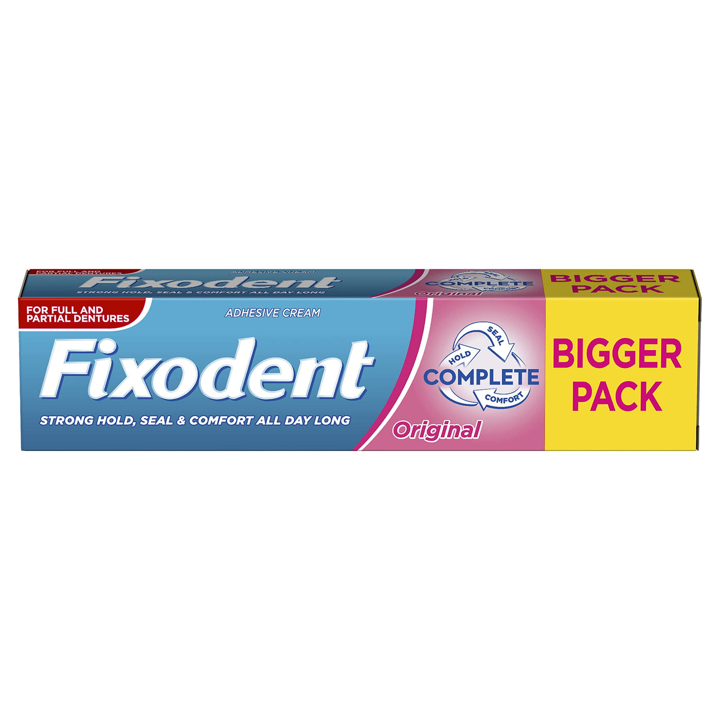 Product description Fixodent Complete denture adhesive is the perfect fit for you if you just don't want to think about your dentures. Whatever you do, whatever you eat, you will enjoy the confidence that your dentures will be held securely and comfortably in place. Fixodent Complete has a strong all-day hold, improved comfort by providing a cushion between your gums and dentures, and helps create a food seal that prevents food particles from getting under your dentures. So you can just relax and enjoy your life to the fullest. Try it now in the Light Minty flavor. Warnings Keep out of the reach of children. P.when('A').execute(function(A) { A.on('a:expander:toggle_description:toggle:collapse', function(data) { window.scroll(0, data.expander.$expander[ 0].offsetTop-100); }); }); Set contains: 1 x Fixodent Complete Original denture adhesive, 70 g More