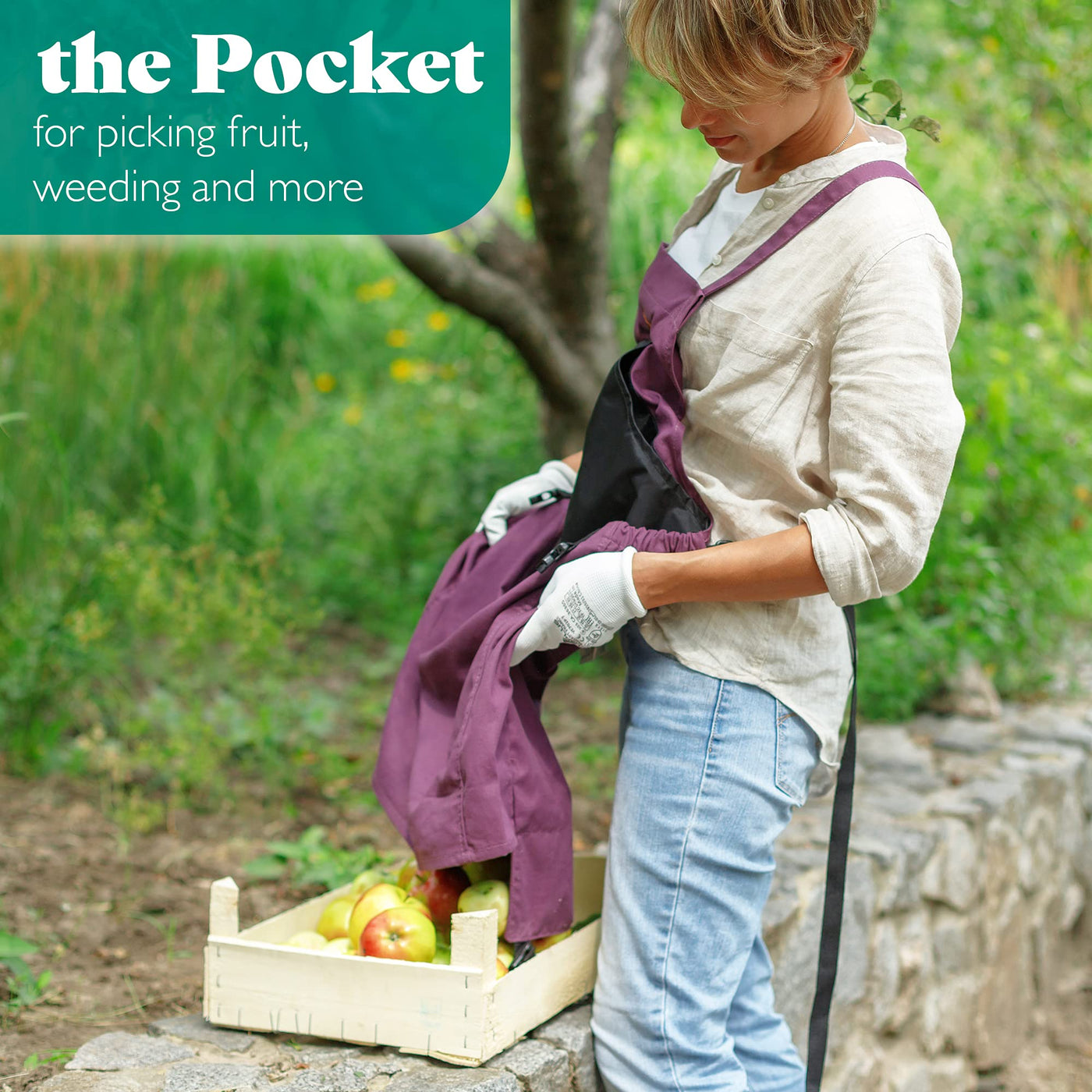 - All-Purpose Canvas Garden Apron Ideal for gardeners, plant harvesters, and green thumbs of all skill levels this apron with its handy pockets provides allow plenty of room for storing garden tools, gloves, and secateurs or foraging fruits, vegetables, and flowers.