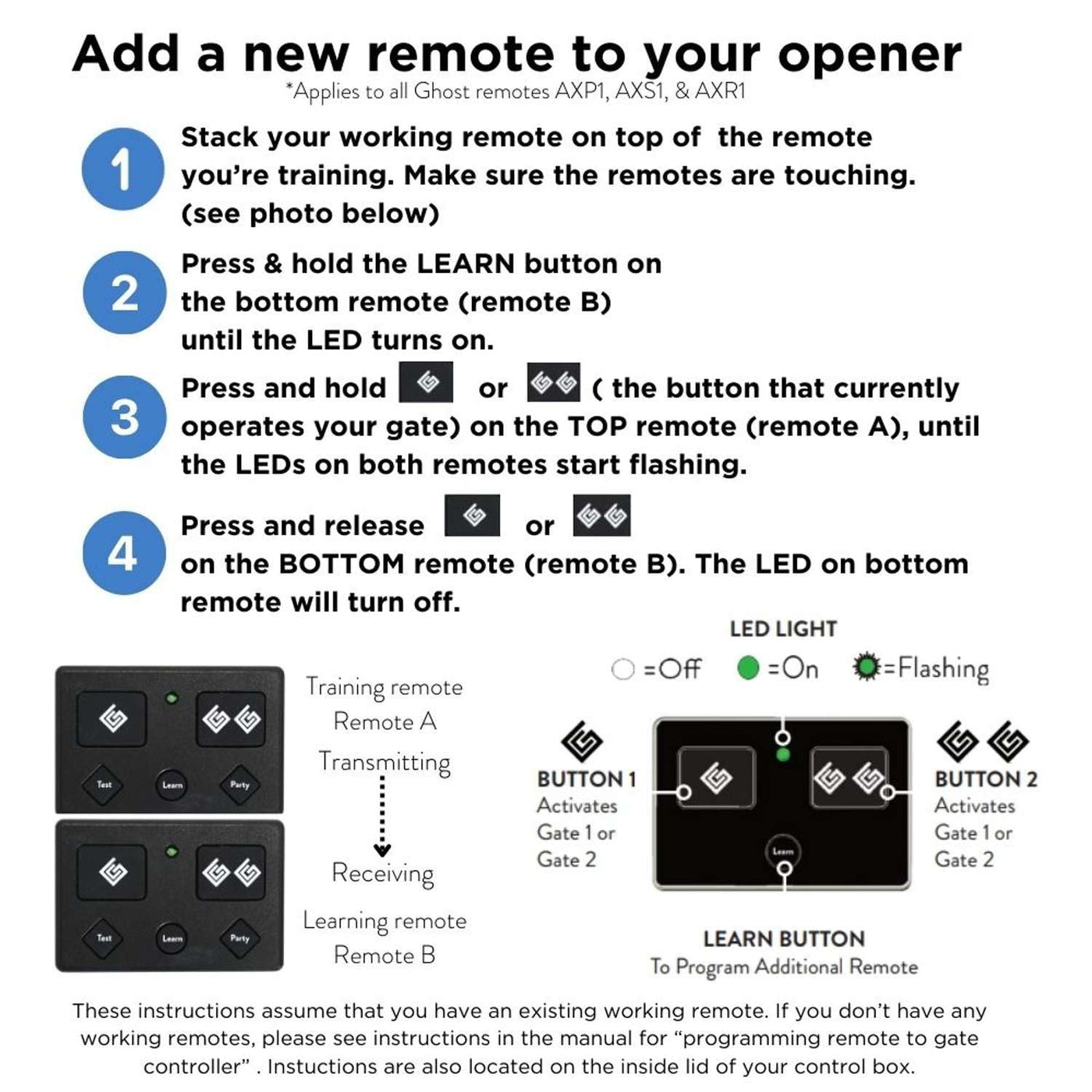 Ghost Controls 3-Button Remote Transmitter for Automatic Gate Openers, Model AXS1 Standard 3-Button