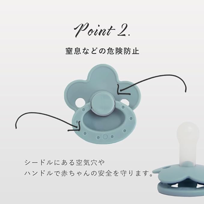 - Cute flower motif design: The pacifier looks more cute. Available in dull grey, grege, ivory, pink and blue. Suitable for both men and women. Depending on the specifications, the position of the handle may be misaligned with the flower. Please turn the handle to adjust the position