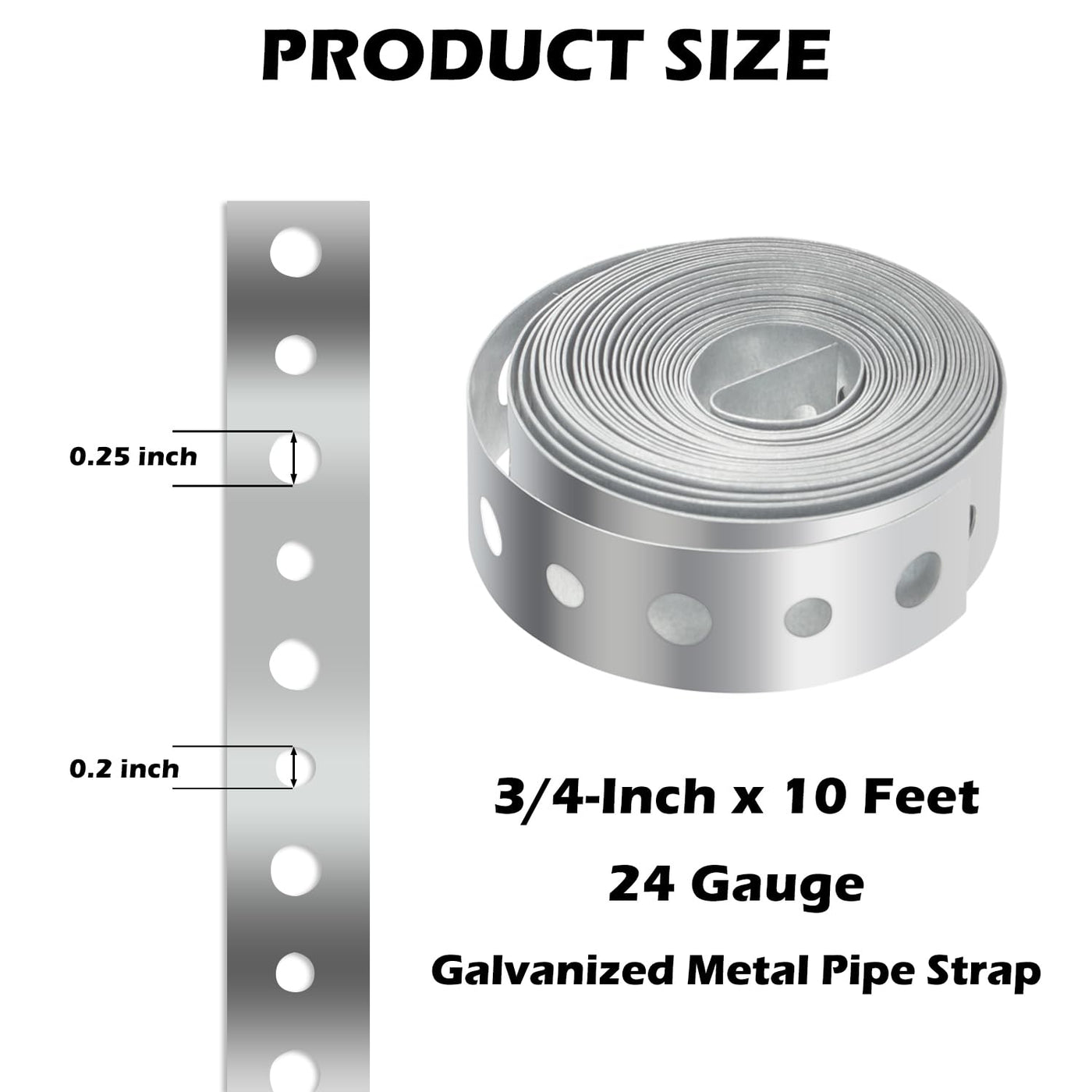 - VERSATILE PIPE SUPPORT: Galvanized metal pipe strap, 3/4 inch x 10 feet (19 mm x 3 m), 24 gauge for flexible trimming and hanging pipes.
