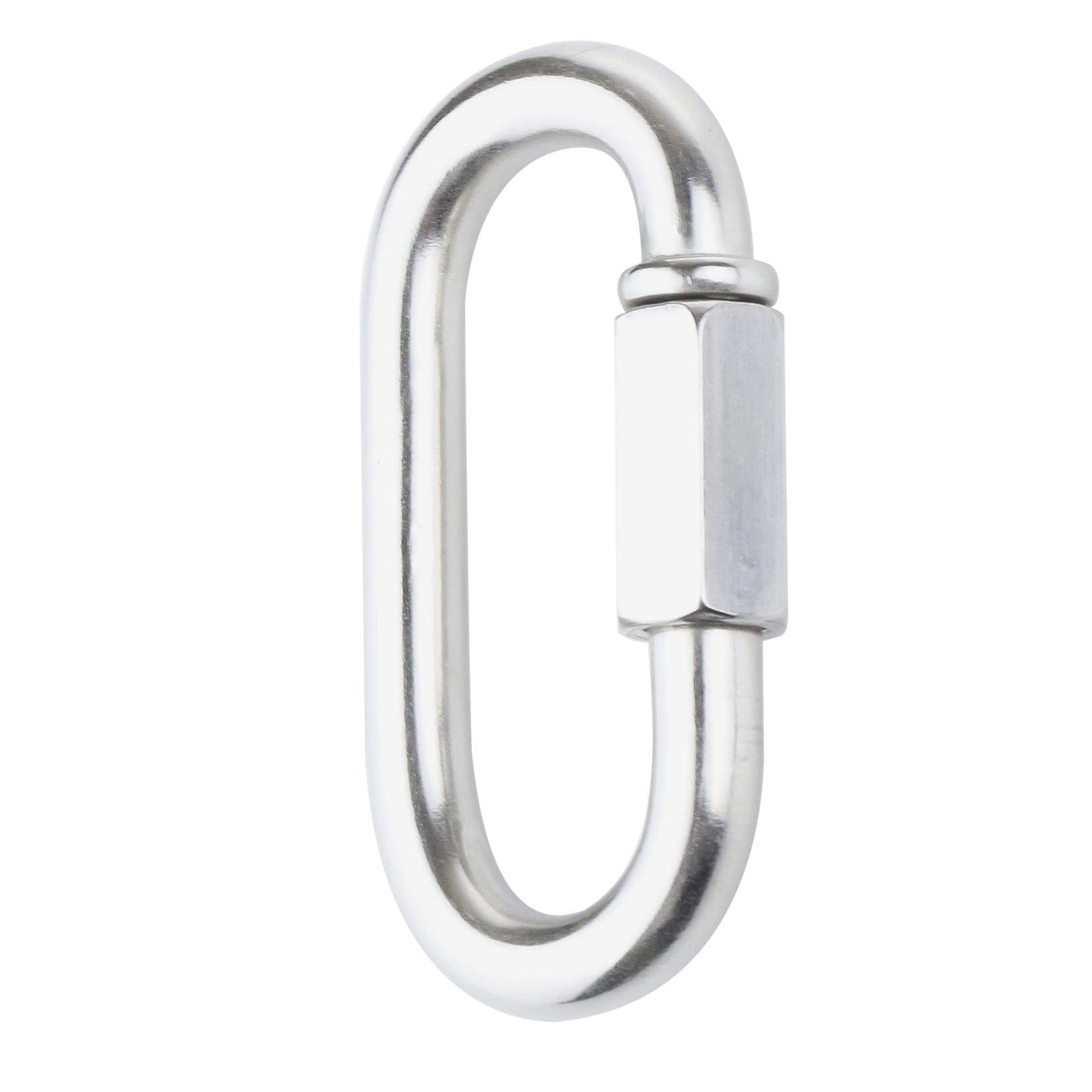 Quick links are the quickest way to link or repair chain. It can be applied in many ways: Including lifting and rigging, holding cables or leashes, supporting slings, hanging swings and hammocks, securing or hanging gym equipment, boating, camping and various sports and entertainment equipment. Features: Quick link carabiners anti-corrosion Passivated for superior corrosion resistance, good quality Material and durable. Premium-grade quick links for chain/rope,cable connections; threaded-nut closure for added security. Excellent choice for boating, sailing, marine and other harsh- condition applications. Quick and simple fastener,useful for attaching chain or cable. Notice:When you use it,need to twist the screw tightly. Match working load limit to the of the chain you will be using. Not to be used for overhead lifting. Our M6 Quick Link is a great option for secure playground equipment parts. High Quality precision screw provides tight and secure connection. Simple and quick fastener, useful for attaching chain or cable Multifunctional: You can use it for backpack, key ring, chains, ropes, camping, hiking, fishing, pet, indoor outdoor equipment gear, accessories. Rust-Prevention: Anti-corrosion and durable meterial. Made of 304 stainless steel that protects against corrosion. Notice: Not for Climbing! IEBUOBO M6 1/4 inch Quick Link Carabiner for many Different Types of Connections. Such as Pulleys, Tie-down, Various Antennas and Cable Applications.