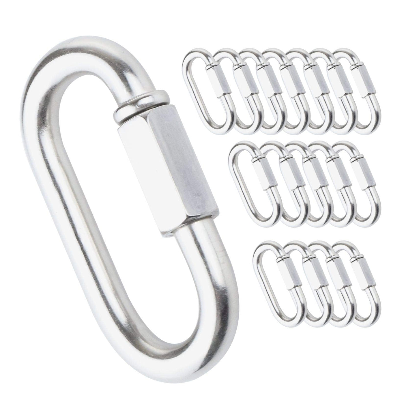 IEBUOBO Quick Link Stainless Steel Quick Link Chain D Shape Locking Quick Chain for Carabiner, Hammock, Camping and Outdoor Equipment (1/4 inch(16Packs)) 1/4 inch(16Packs)