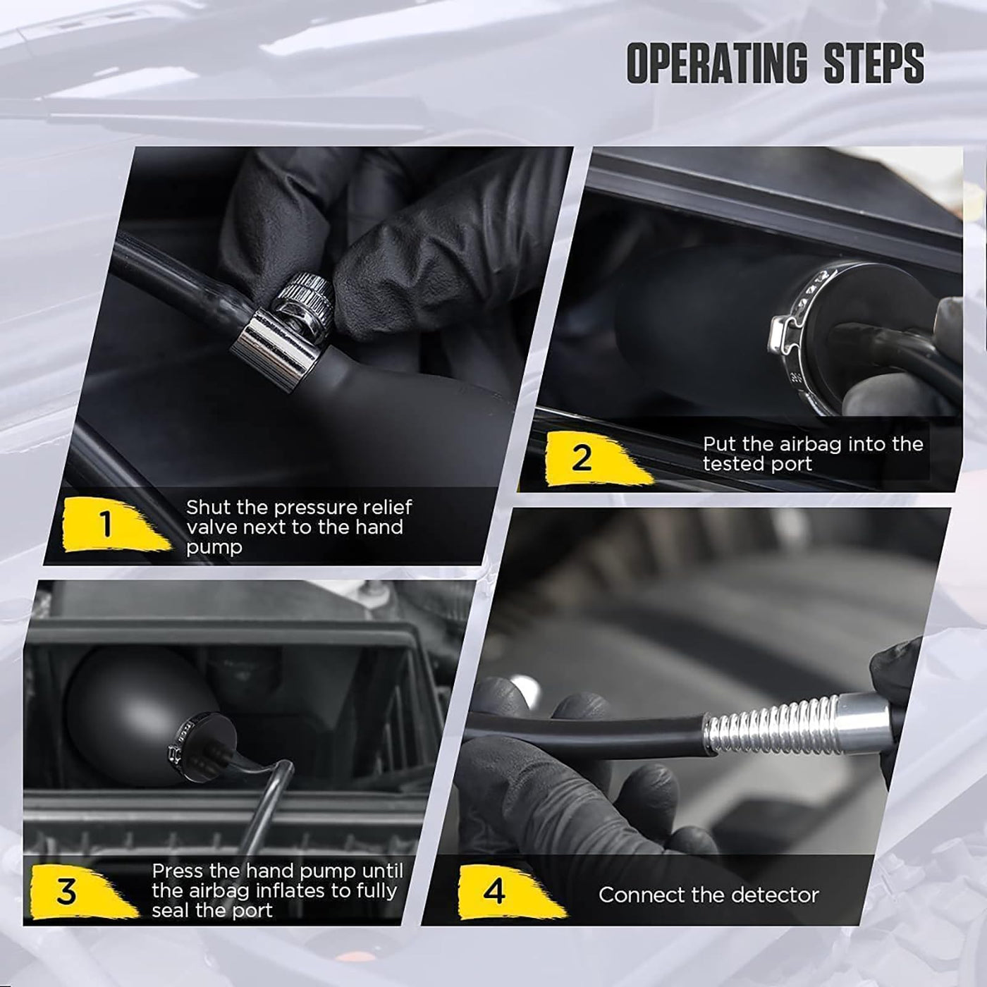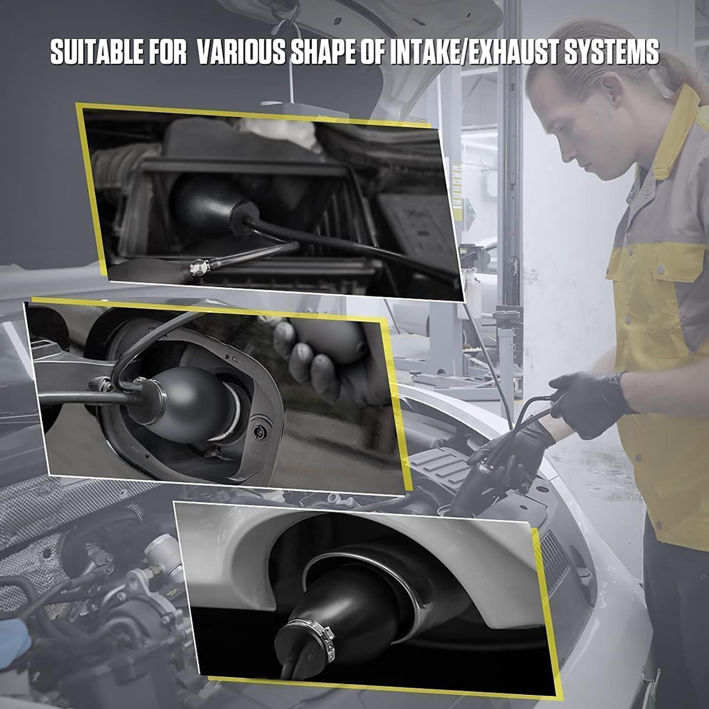 - VERSATILE APPLICABILITY -- Inflatable air bladder fits any shape of air intake/exhaust system, such as round, oval, square, rectangular, and even heavily sloped and hard-to-reach shapes, allowing for a quick diagnosis of any intake problem on the vehicle's piping.