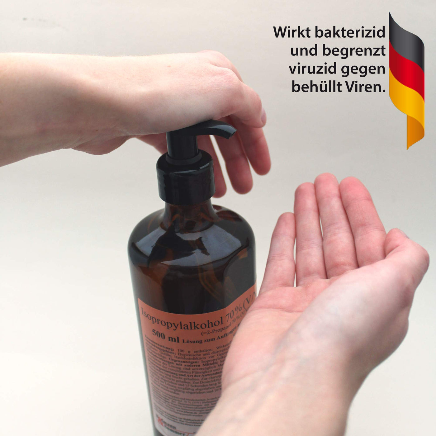 - Scope of delivery: 1 x 500 ml isopropyl alcohol 70% for disinfecting hands and surfaces with a practical dispenser. < /ul>