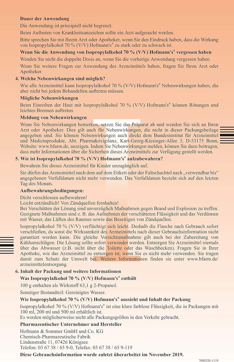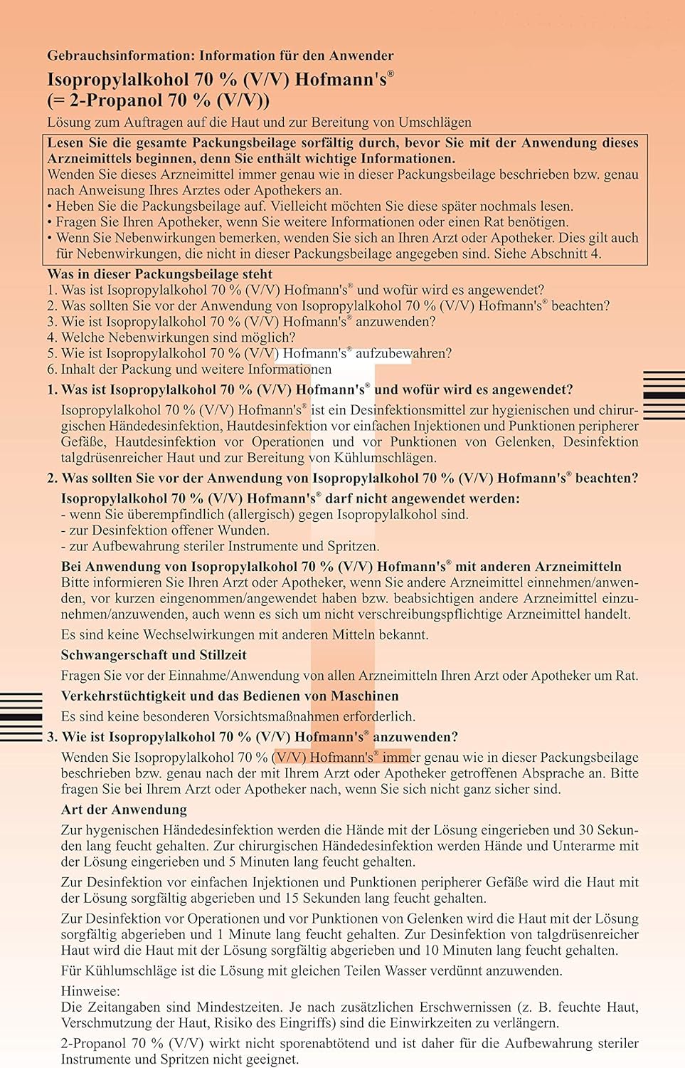 - Isopropyl alcohol 70% (V/V) Hofmann s with the active ingredient isopropyl alcohol (2-propanol, isopropanol) is a medicine for hygienic and surgical hand disinfection and skin disinfection.