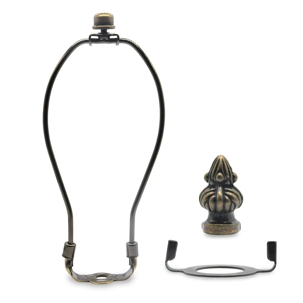 - 8 Inch Antique Brass Lamp Harp Kit -Detachable Pratical Spare Parts included. 2 kinds of harp holder -saddle base adapter and E26 screw base uno fitter included. And 2 cap knob finials -normal type and Bronze Metal Lamp Finial Cap Knob included for replacement