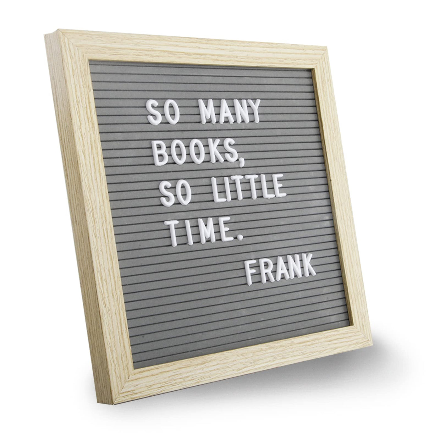 Letter Board by Crystal Lemon, Felt Letter Board, 10x10 Inches, Changeable Wooden Message Board Sign, Wood Frame, Wall Mount, Free Standing(Gray) Gray
