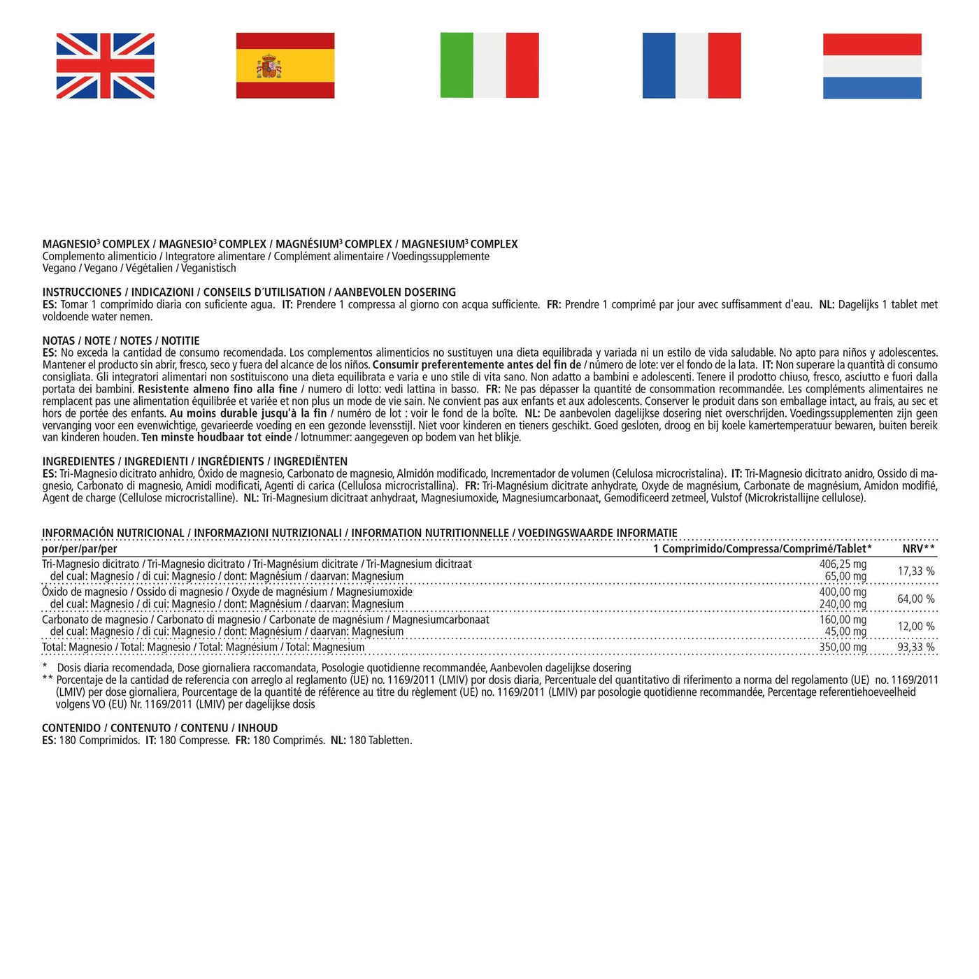 - HIGH DOSE 180 vegan divisible tablets 350 mg elemental magnesium per tablet for 6 months continuous supply with the magnesium compound made from citrate, oxide and carbonate. Mix for quick and long-term absorption.