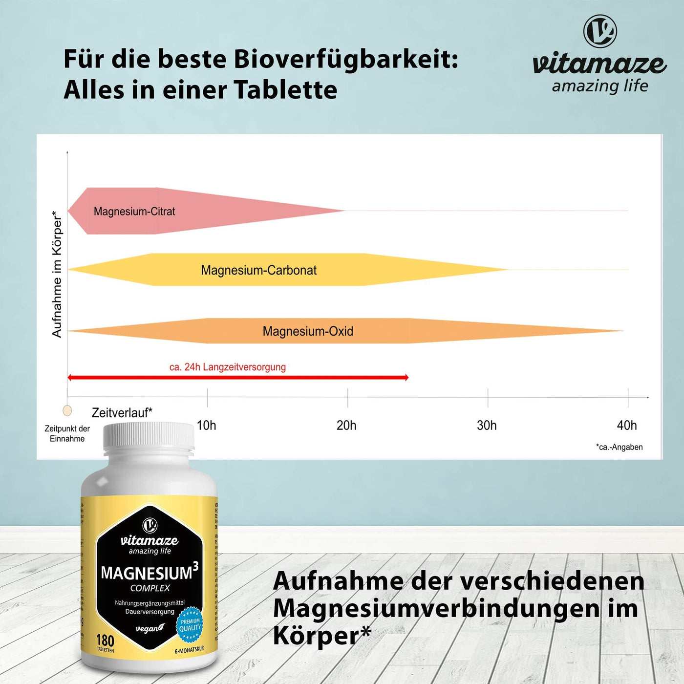 Magnesium complex, 350 mg elemental magnesium in 1 tablet, 180 high-dose vegan tablets with 24-hour depot effect, magnesium citrate carbonate oxide without additives, Made in Germany