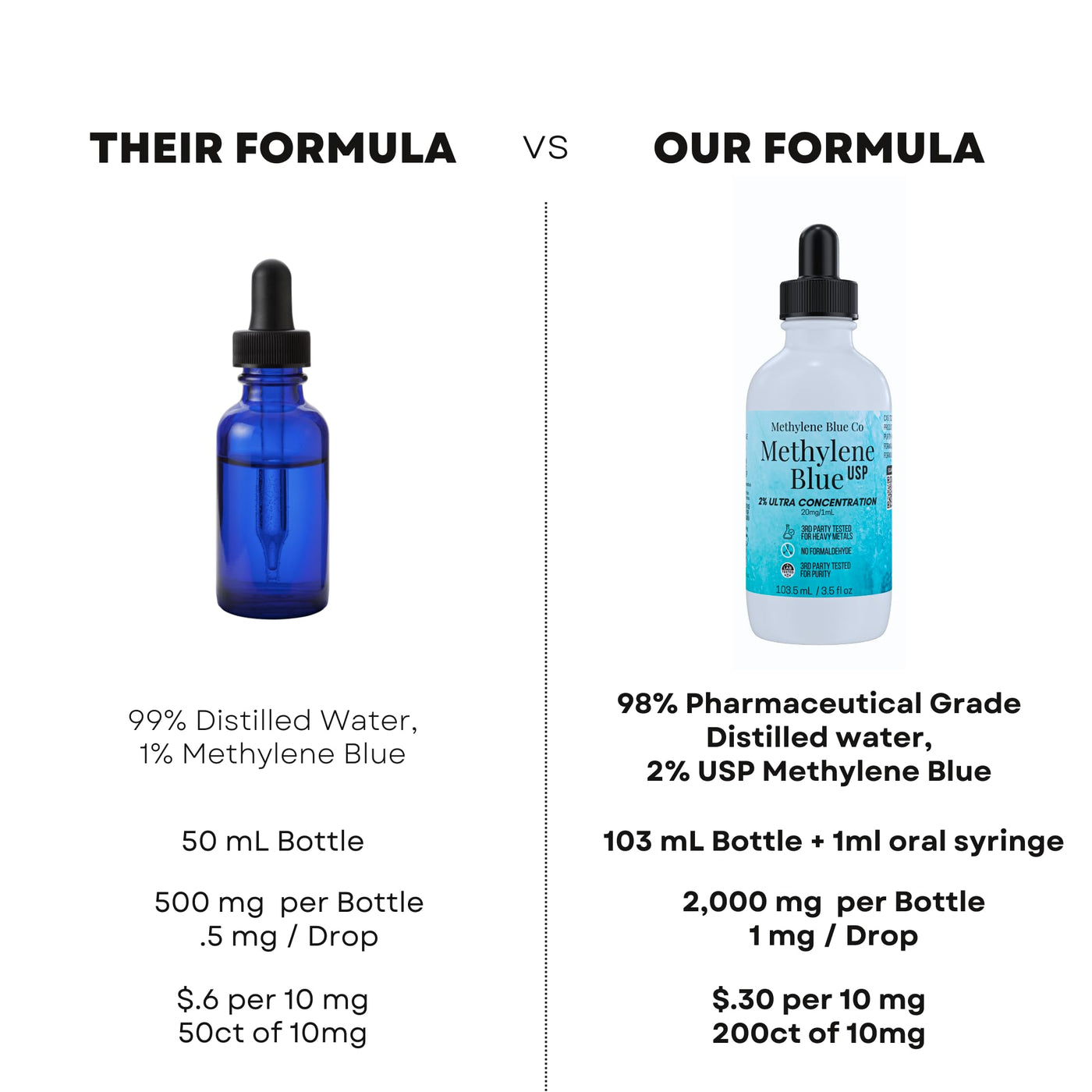 Methylene Blue, 2% Ultra Concentration Pharmaceutical Grade for Humans Nootropic Supplement - Heavy Metals Tested 2% Solution