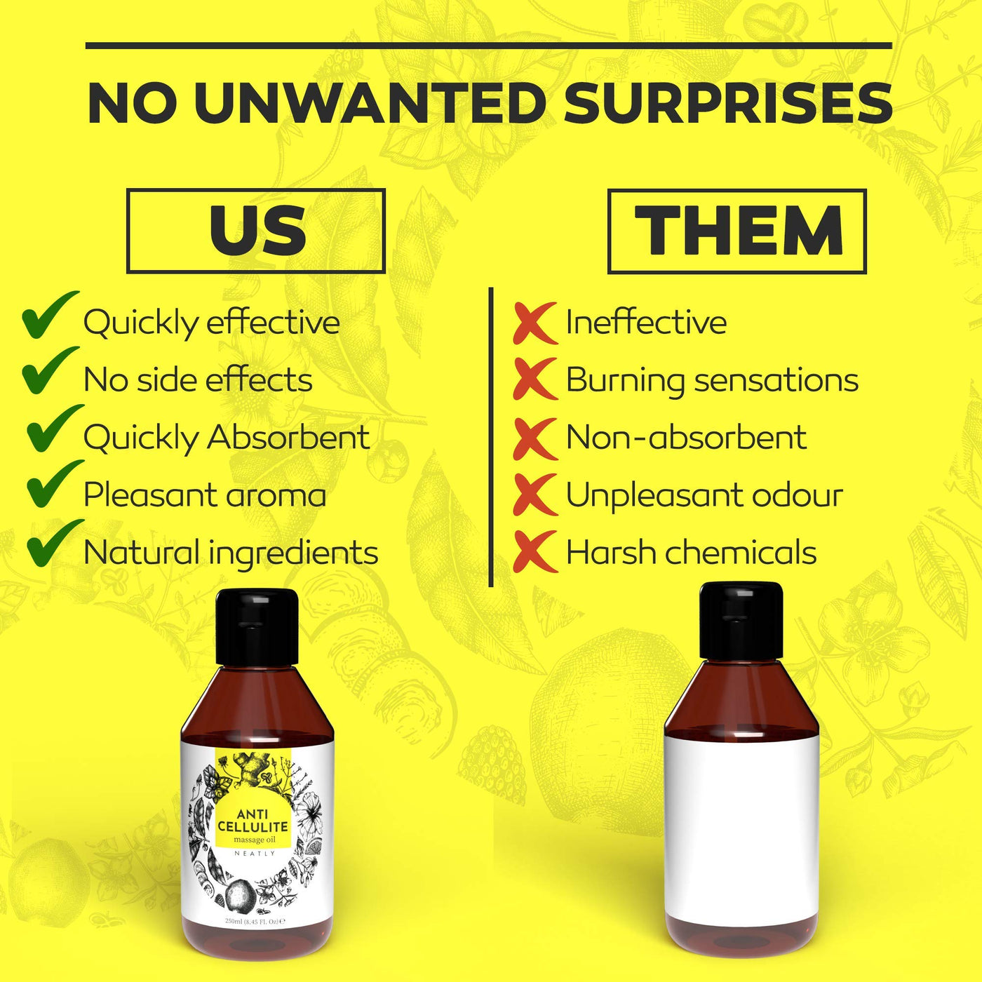 - ANTI CELLULITE MASSAGE OIL: When massaged onto the skin, this body oil works to enhance skin tone, acting as anticelulitic cream stretching out cellulite dimples, replacing the need for a harsh skin exfoliator or anticellulite products, which are not gentle skin oil. An alternative to anticelulitic cream and celulitis massager cream