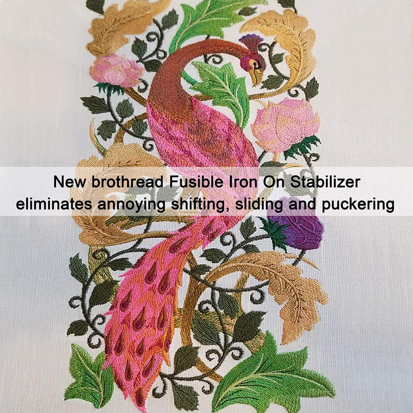 - WIDE APPLICATIONS: It's permanent fusible iron on cutaway stabilizer, it affixes to the embroidery and permanently support the design. It retains the design's shape after repeat wash. Best used on knit, fleece, denim and fabric that is unstable, moves or distorts when tugged on. Great for hoop embroidery, applique,thread stretch,computer lace embroidery and decorative stitch sewing. Be helpful when you make embroidery on a small area design, but can't hoop the fabric and stabilizer together.