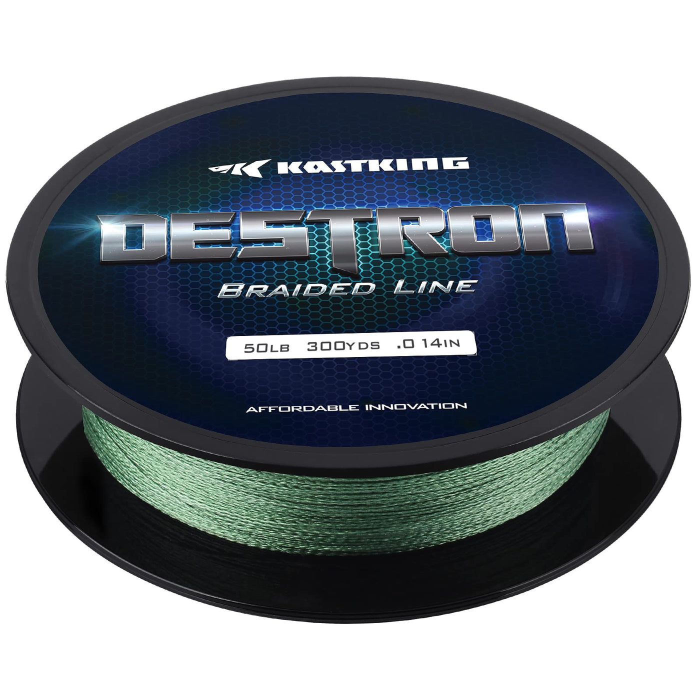 New KastKing Destron Braided Fishing Line, Highly Abrasion Resistant, Improved Knot Strength, Ultra-Thin Diameter Superline, Zero Stretch & Memory, CFT “Color Fast Technology”, 75% Thinner Than Mono Moss Green 300 yds-30lb-0.28mm