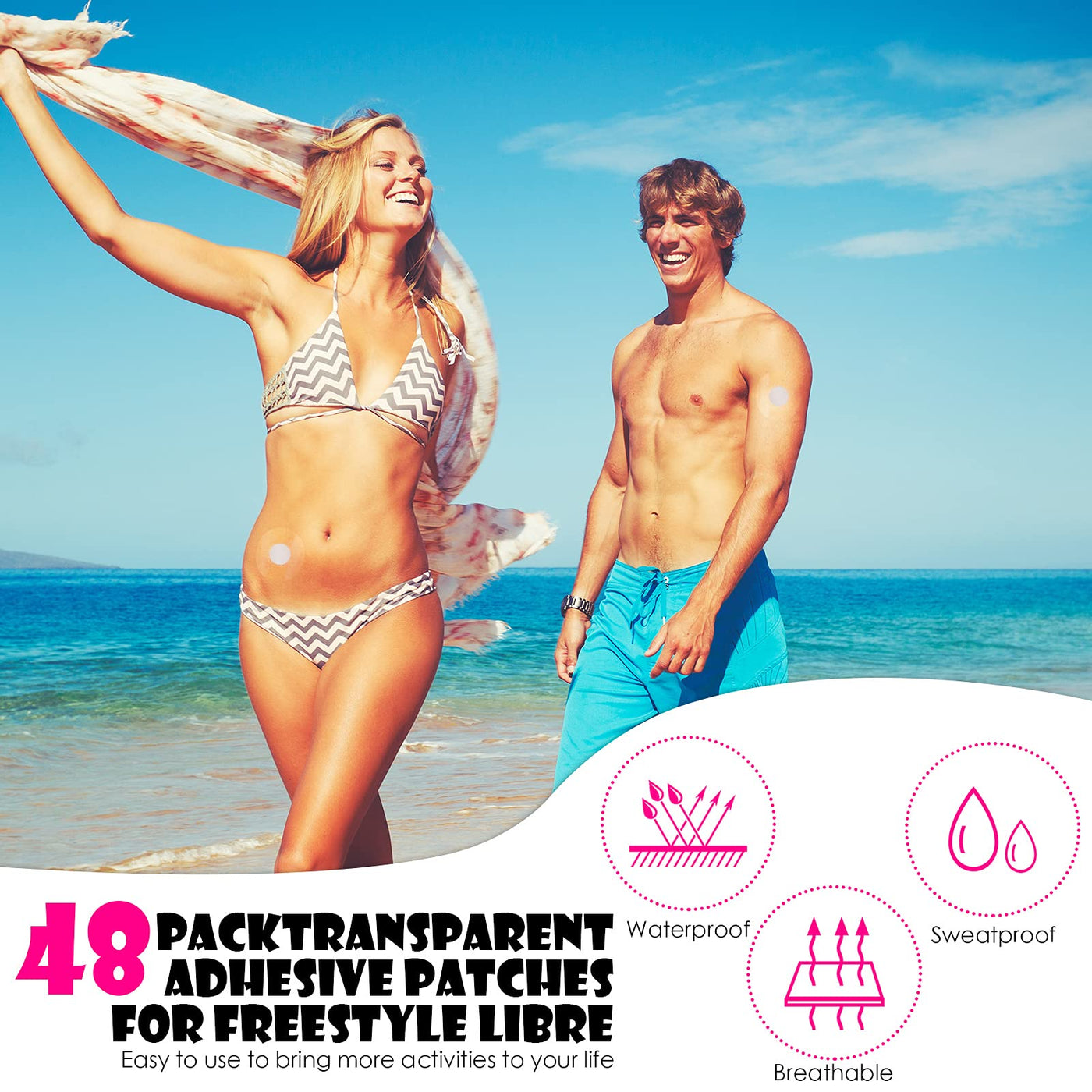 - What you will receive: you will receive 48 pack of clear adhesive patches with pre-cut transparent tape waterproof and sweatproof continuous glucose monitor protection to meet your needs for multiple quantities and different scenarios for use during swimming, showering and sports, sweating
