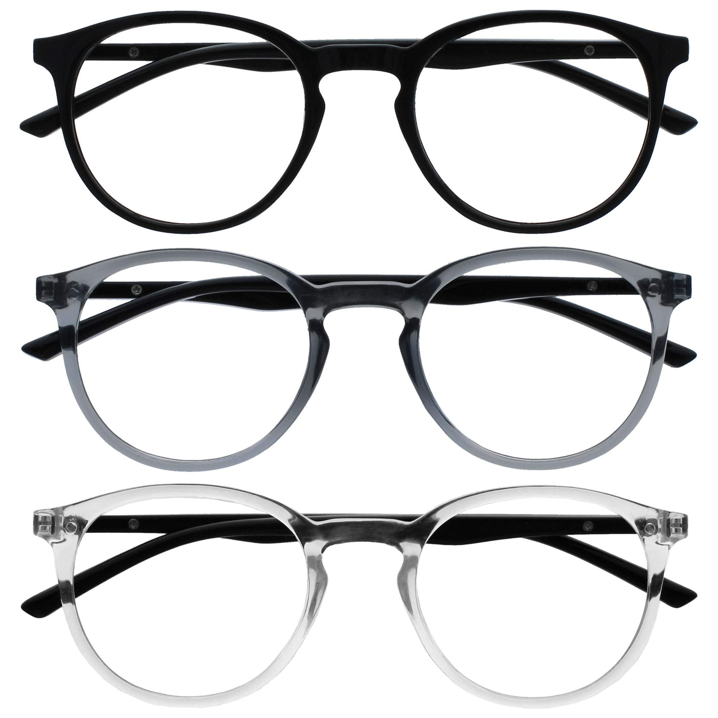 OPULIZE Met Reading Glasses Pack of 3 Slim Round Frame Spring Hinges Scratch Resistant Men Women RRR60-17C Black / Gray Black / Clear Black +2.0 Diopter (Pack of 3) Single