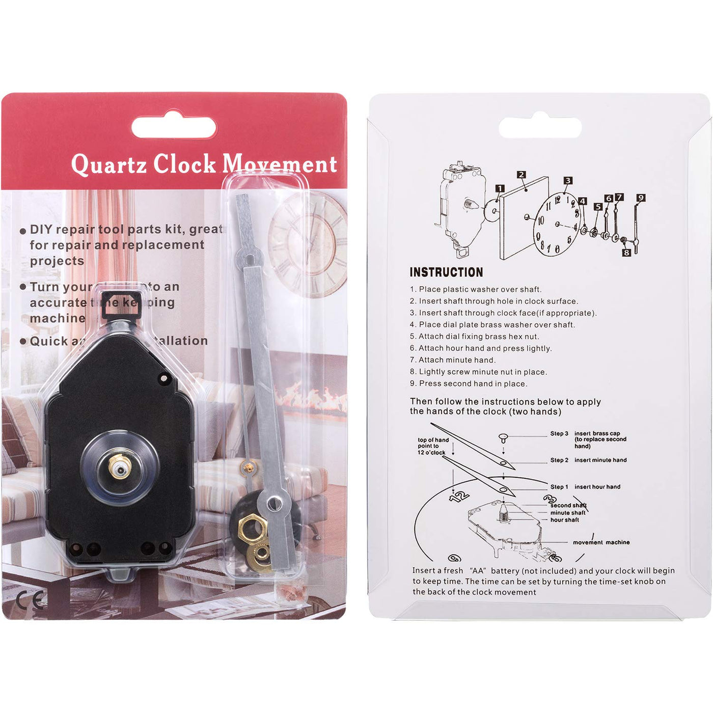 - Warm notice: when you install this clock movement kit, please keep the hour hand and minute hand parallel, and please check the sizes before buying